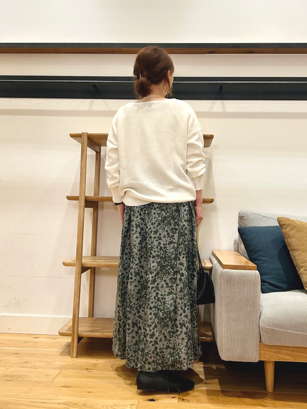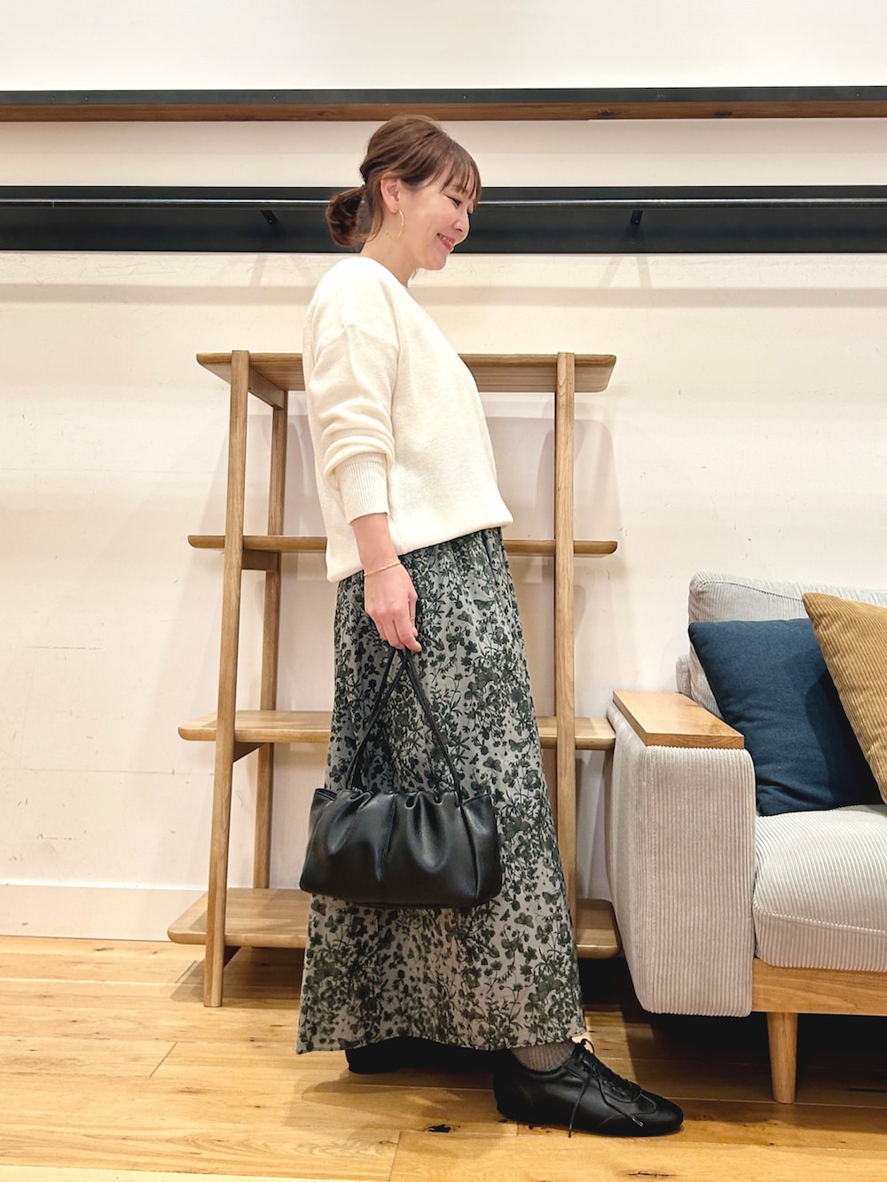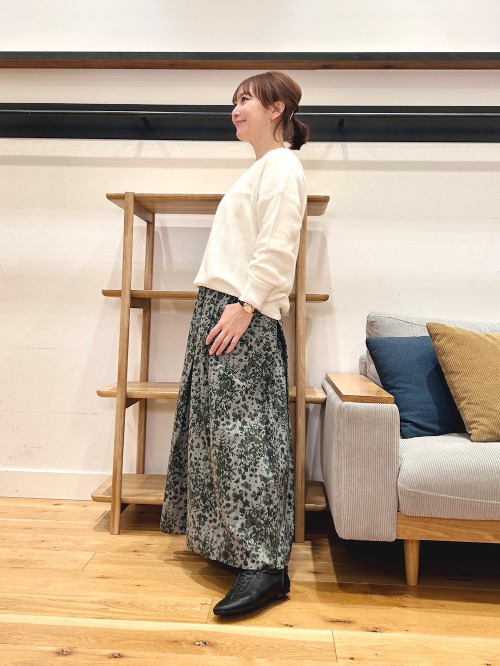繊細なリバティ柄が可愛らしくも大人っぽくきれてコーデが一気に華やぎます♪