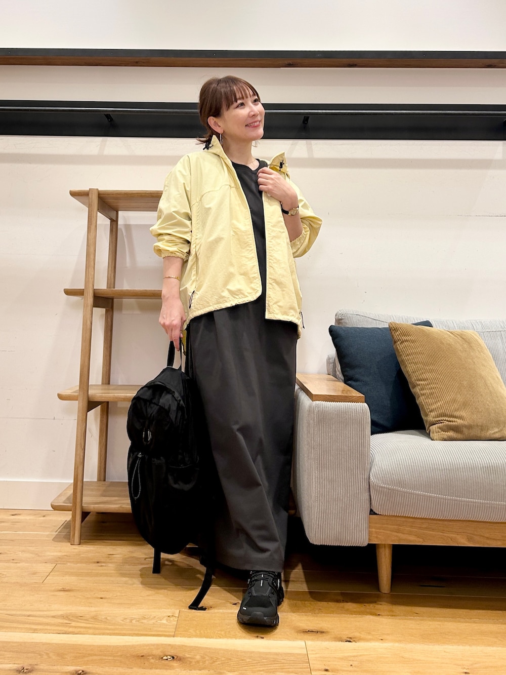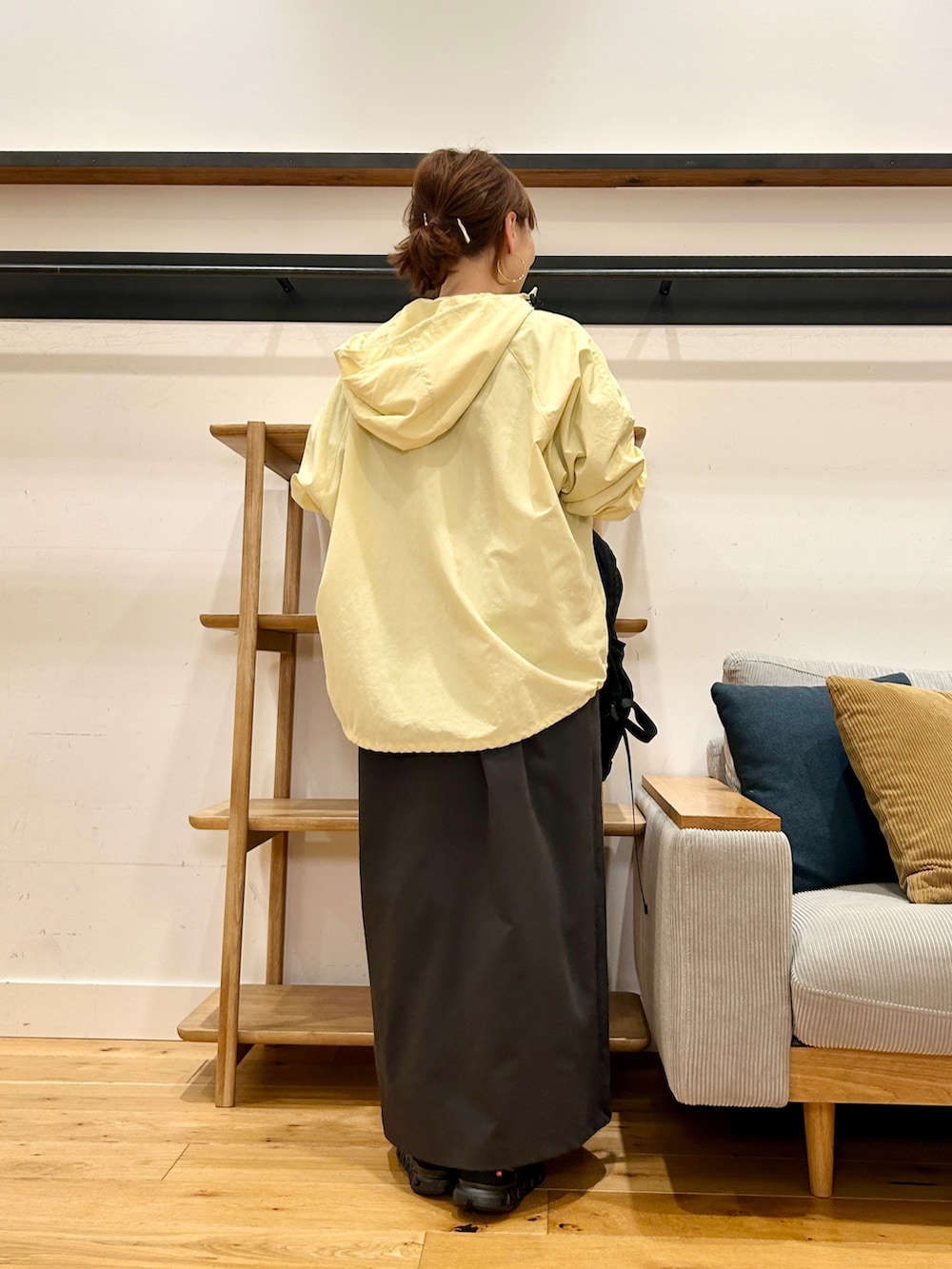ゆったりしたシルエットで中に着込めるので、気温が読みにくい時期にも使いやすいこちら。