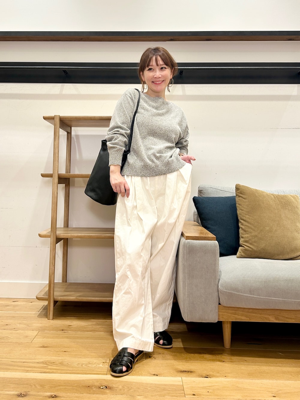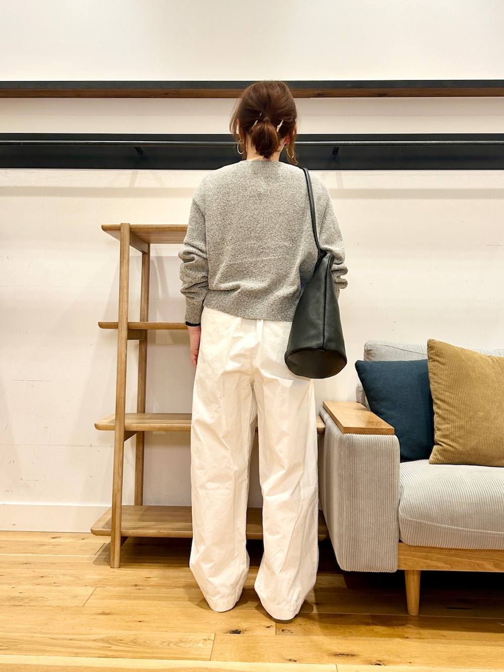 着丈が短めなので、ワイドパンツやボリュームのあるボトムとも相性抜群です◎