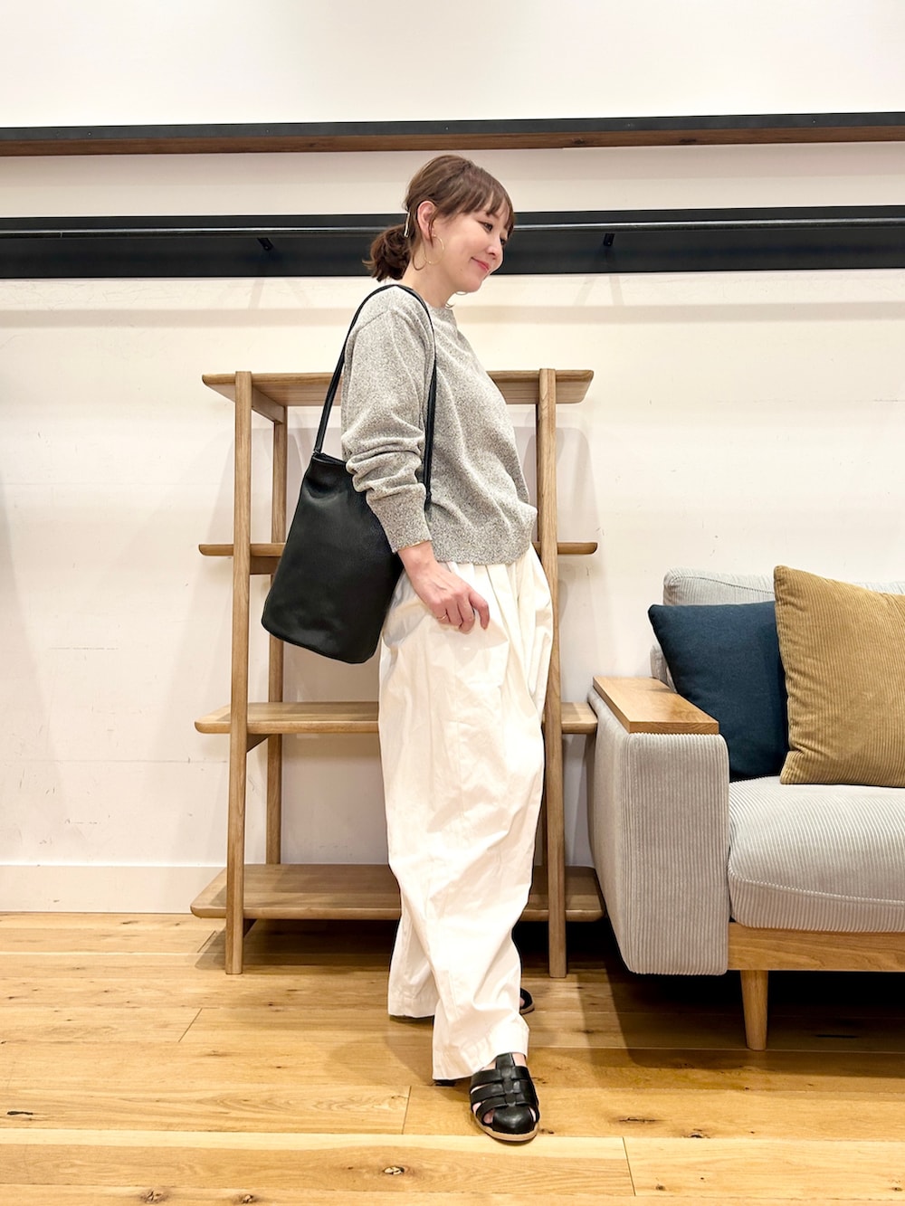 肩がけしやすい長めハンドルで、さっと持てる気軽さもありつつきれいめスタイルにもハマる万能アイテムです。