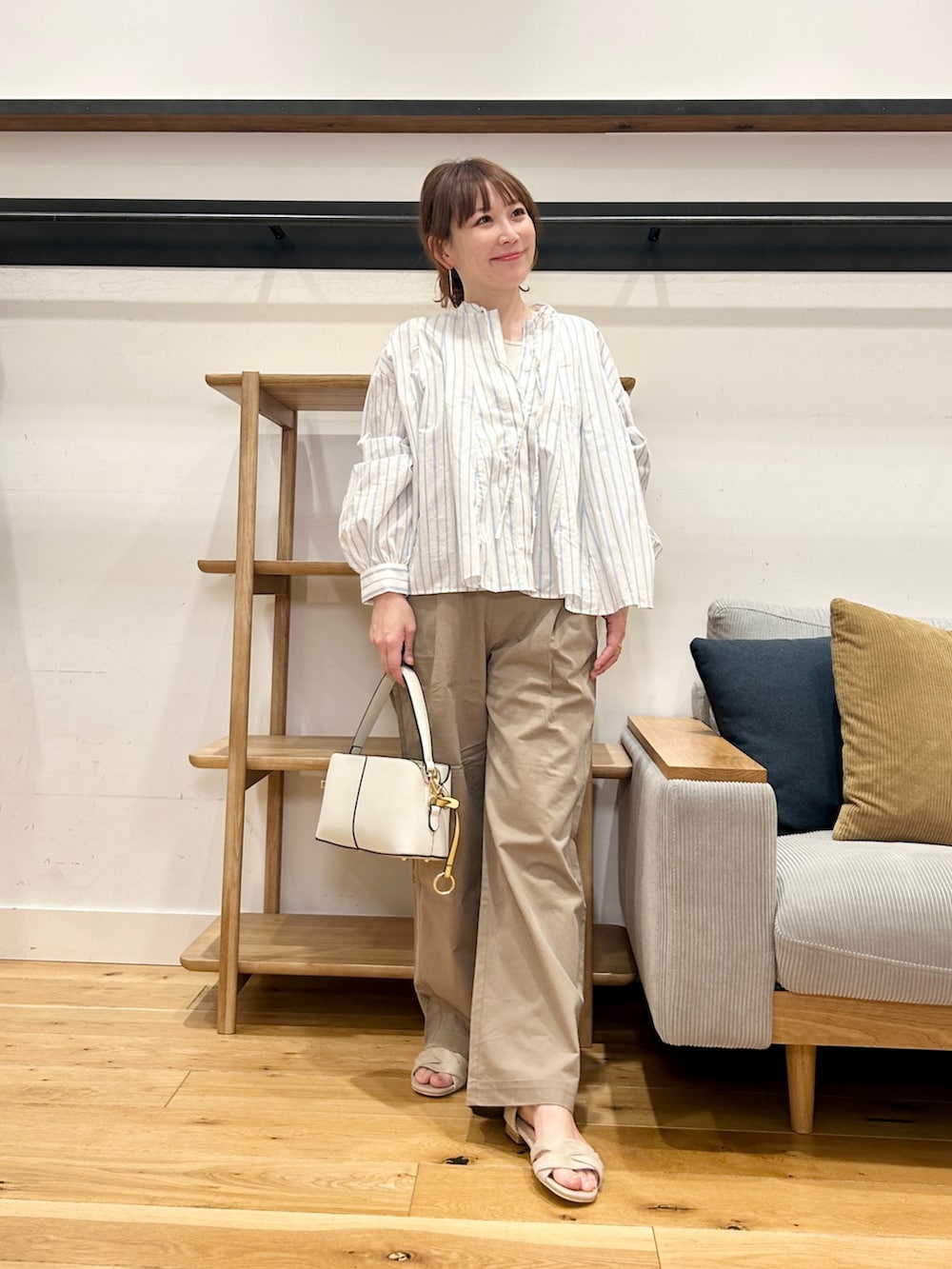 抜け感がありながら、どことなくきちんと見え、ラフなスタイリングでもどこか上品な印象に。