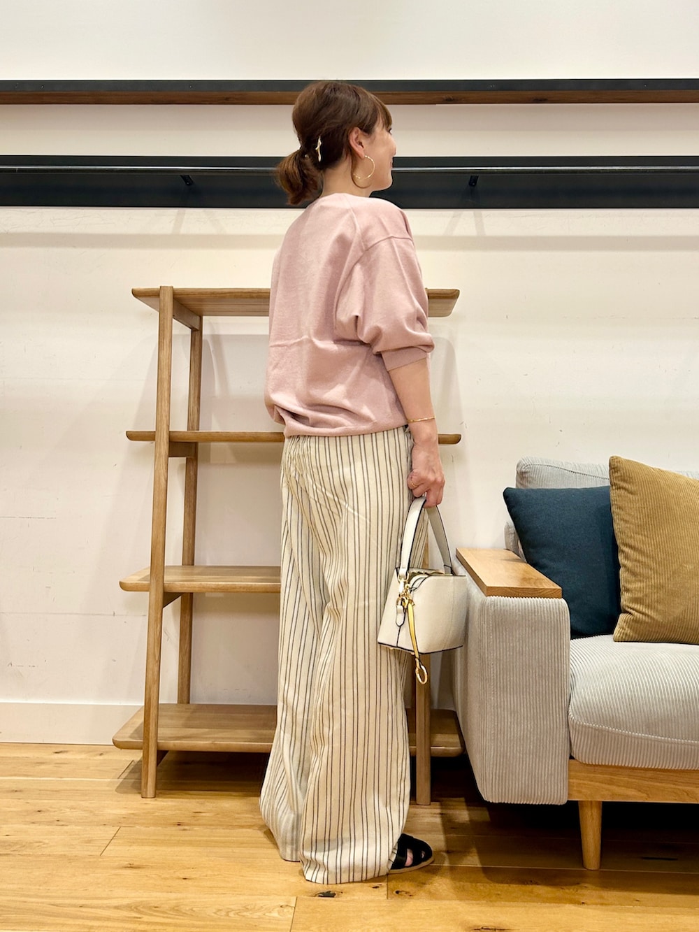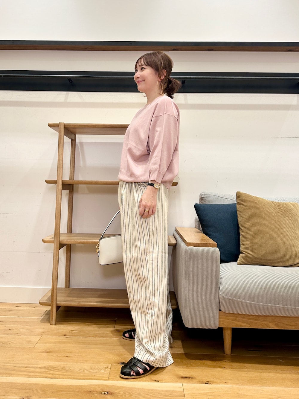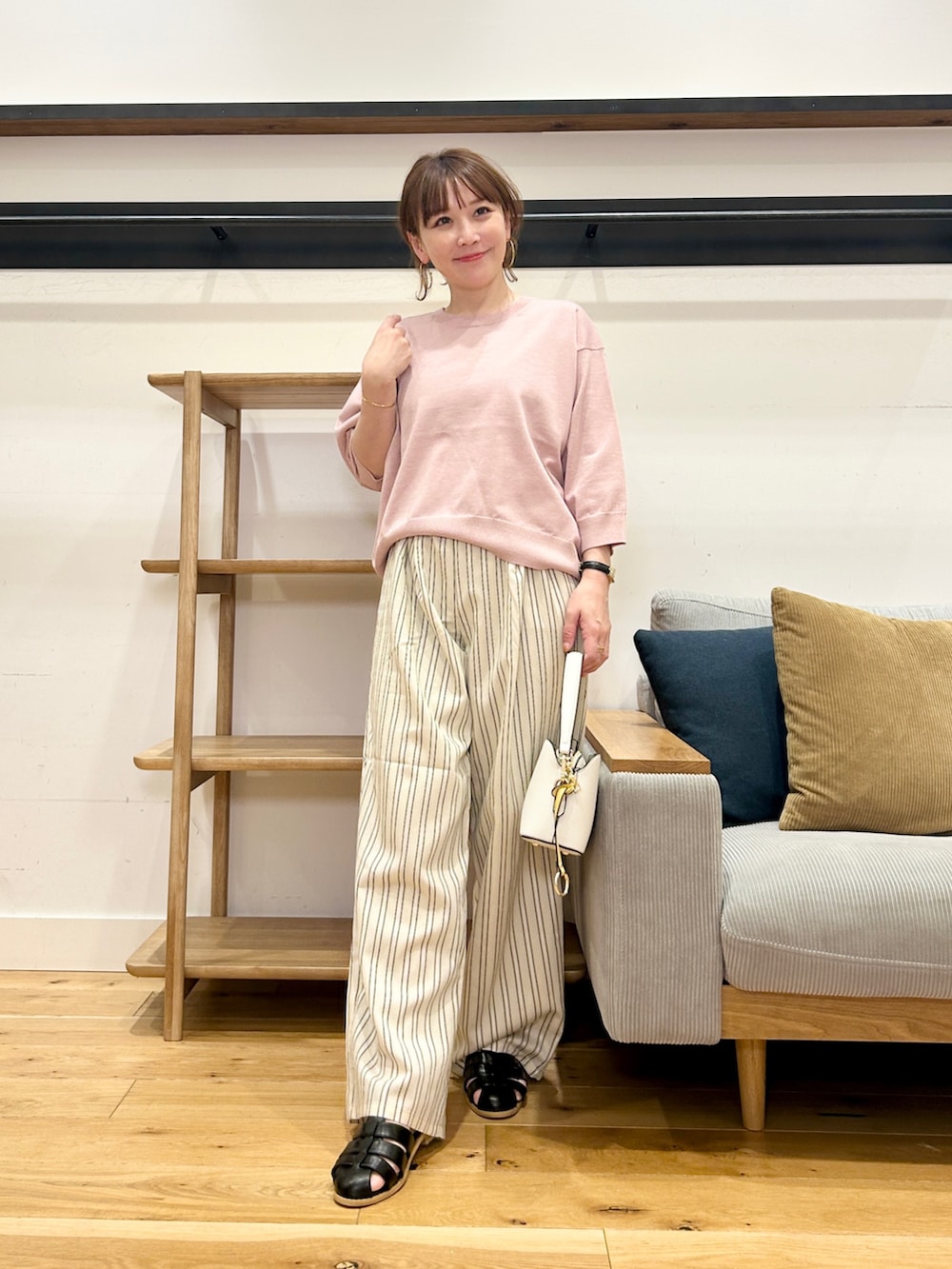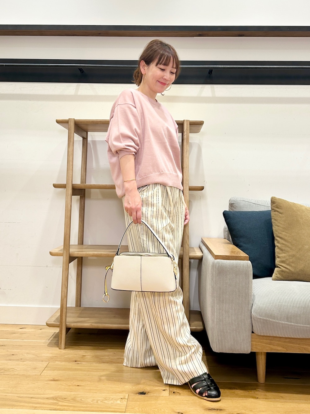 軽い素材感で落ち感もあるから、歩いたときの揺れ感もきれいで、これからの時期めっちゃ使いやすいです!
