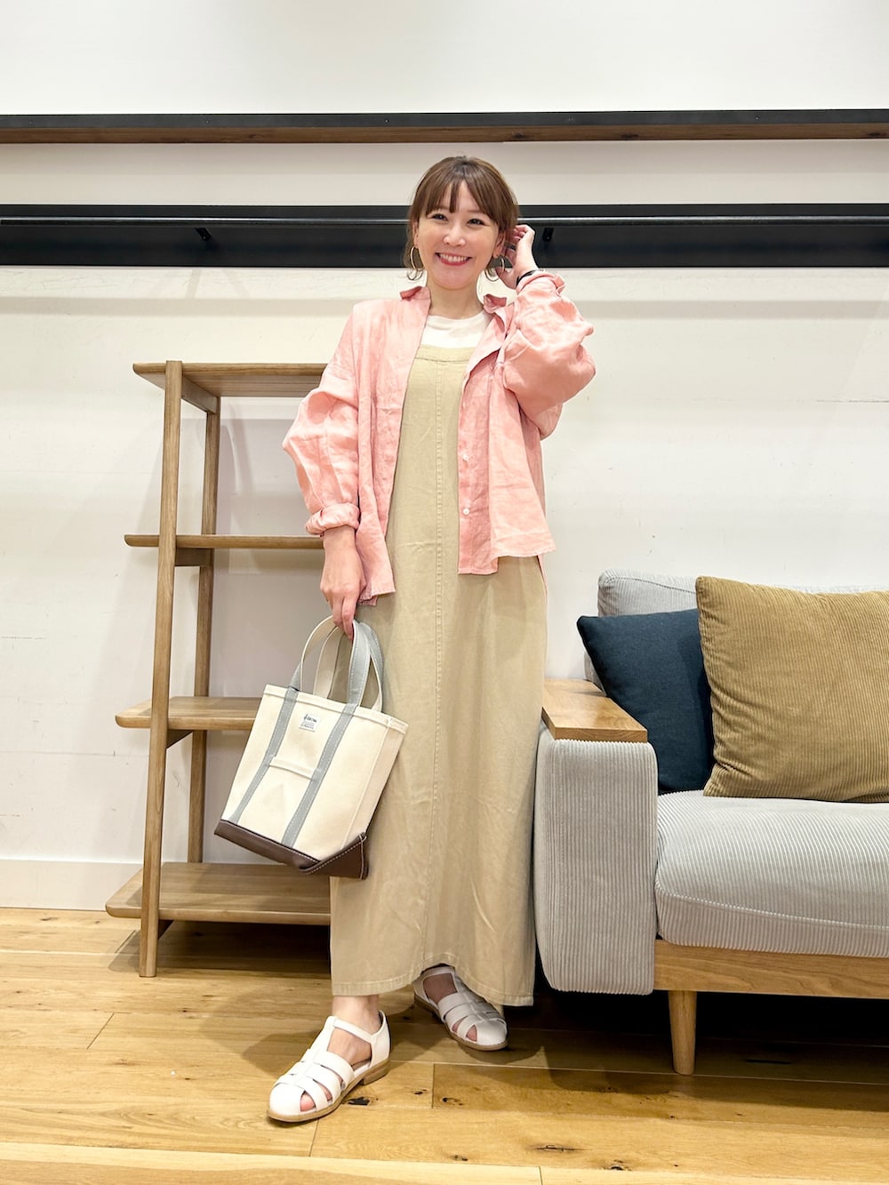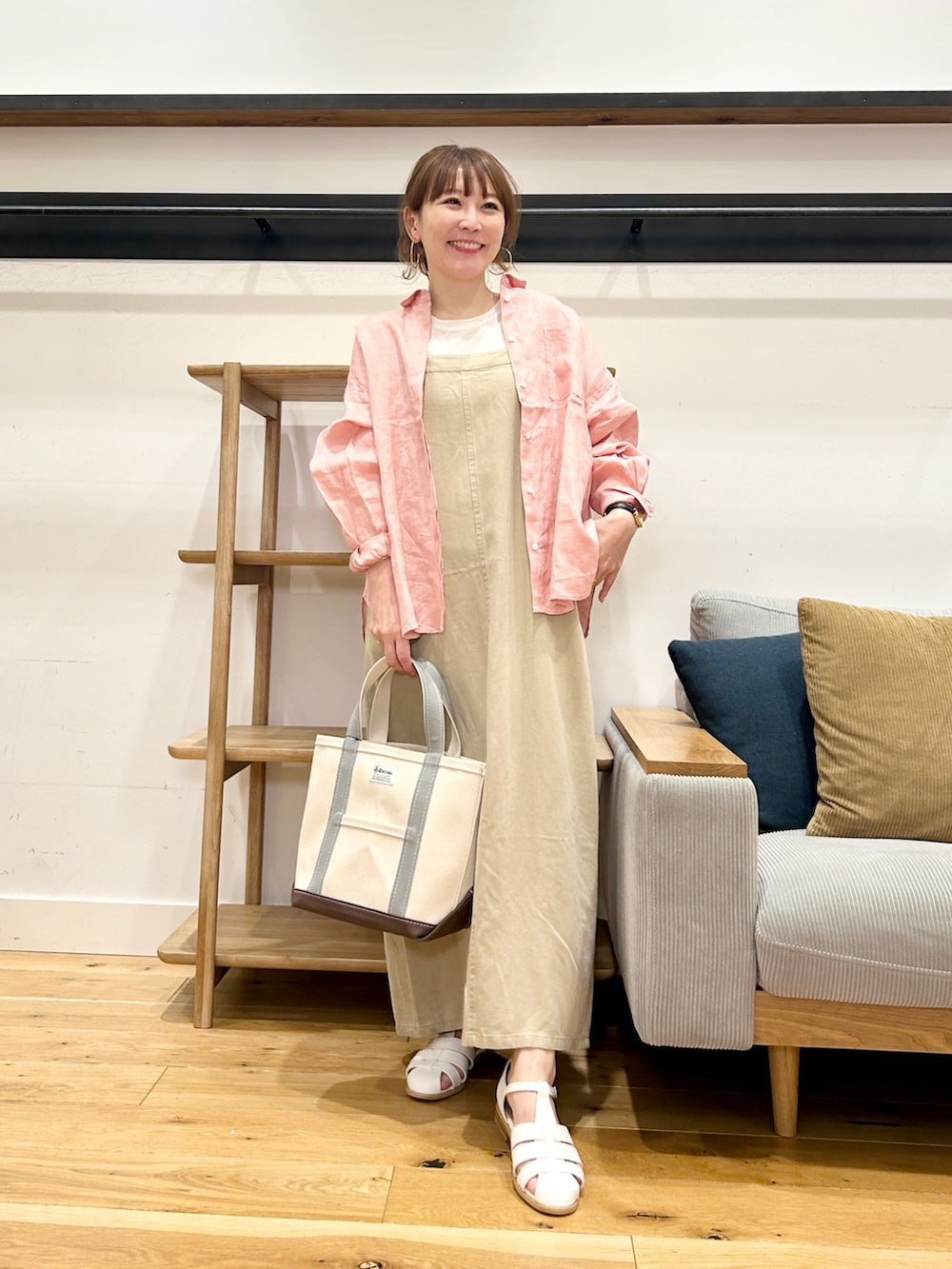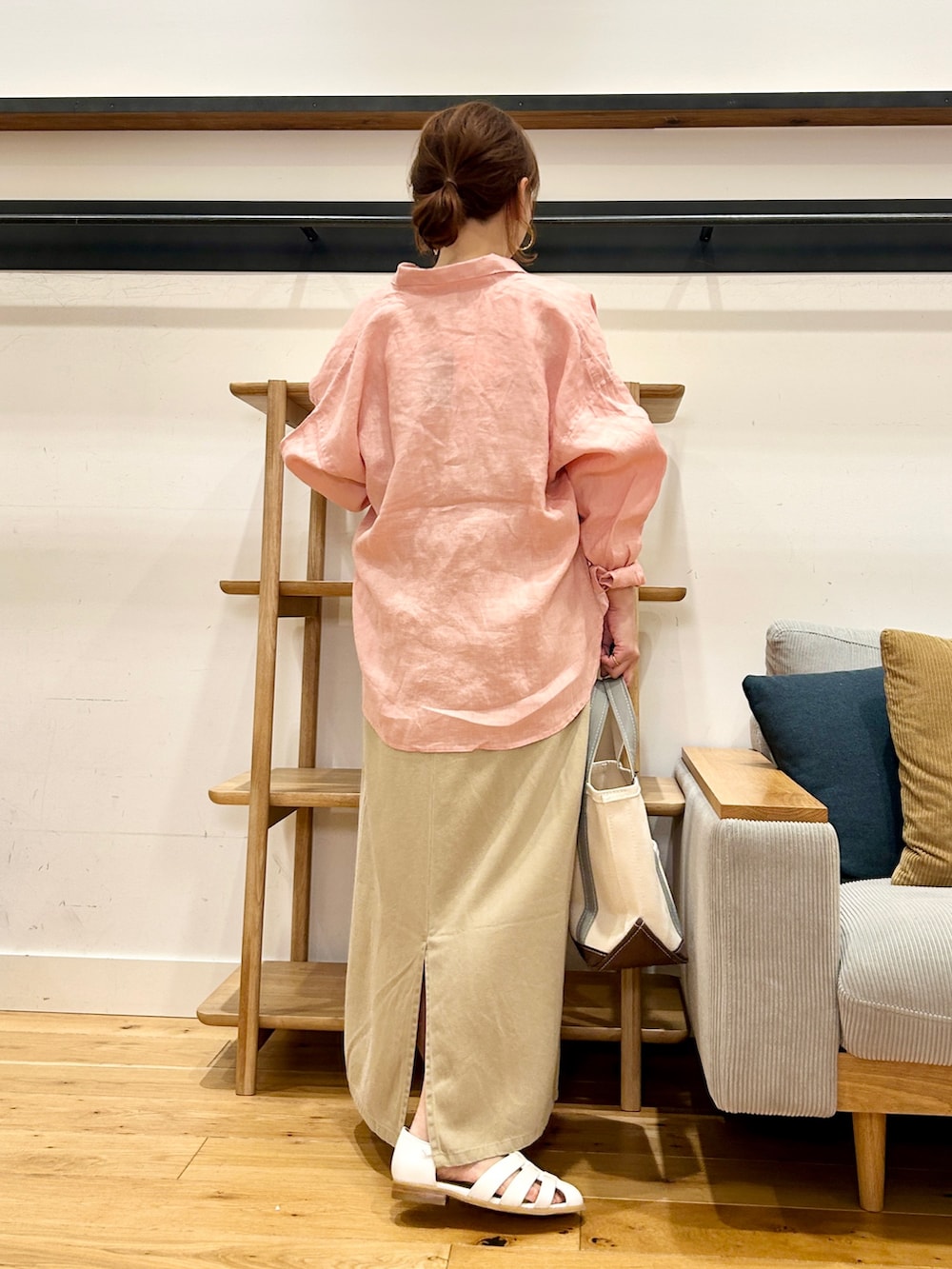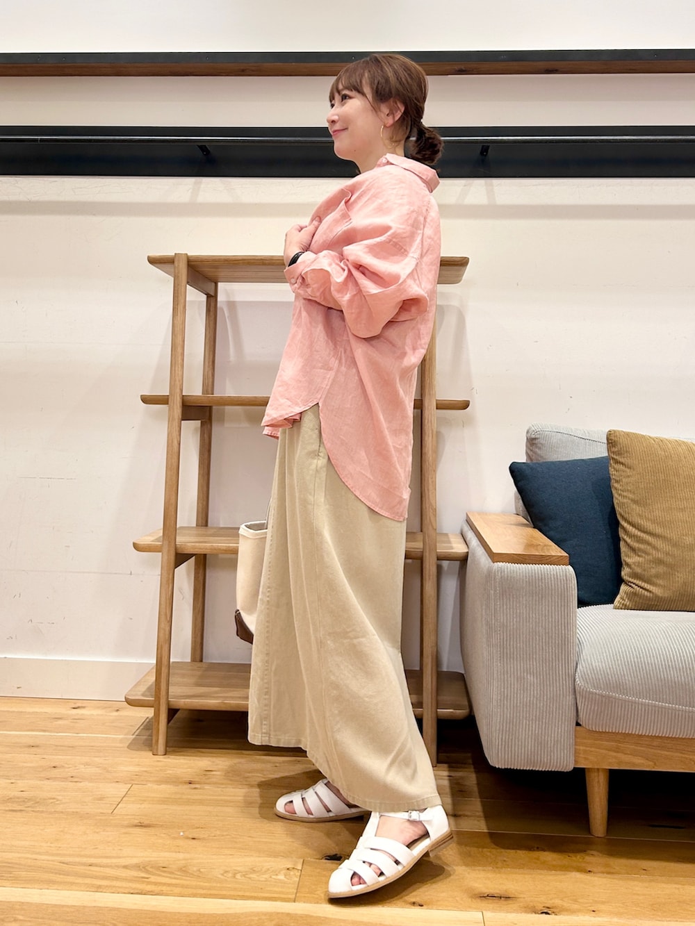 リネン特有のラフな風合いと、少しゆとりのあるシルエットで、着るだけでいい感じに抜け感が出ます。