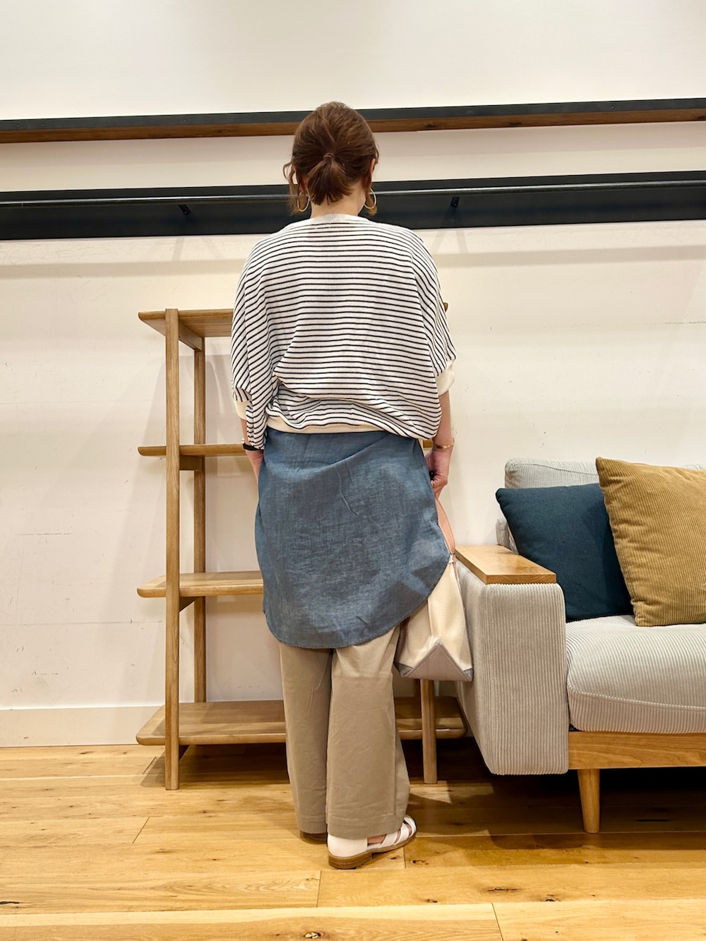 ウエストは後ろゴムで楽に履けるのに、フロントはきれい見えする仕様なので、ラフになりすぎないのも◎。