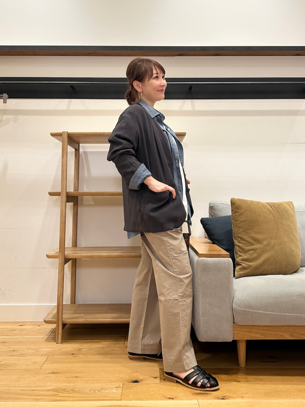 Tシャツやタンクにさらっと重ねるだけでも雰囲気が出て、普段のスタイリングが一気にこなれた印象に変わります。カーディガン感覚で使える軽さです♪