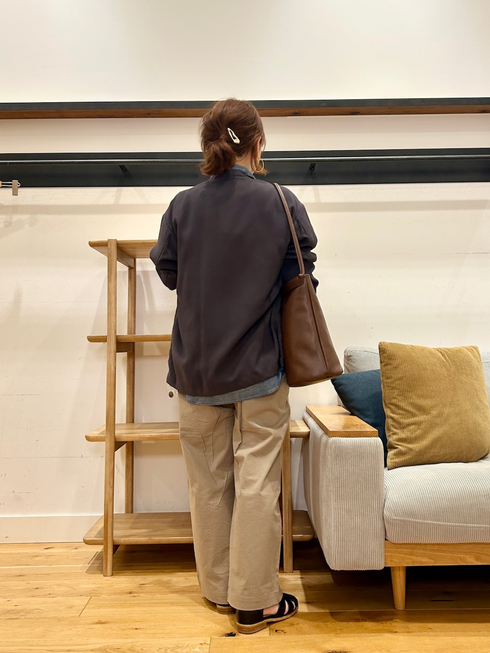 肩がけしやすい長めハンドルで、さっと持てる気軽さもありつつきれいめスタイルにもハマる万能アイテムです。