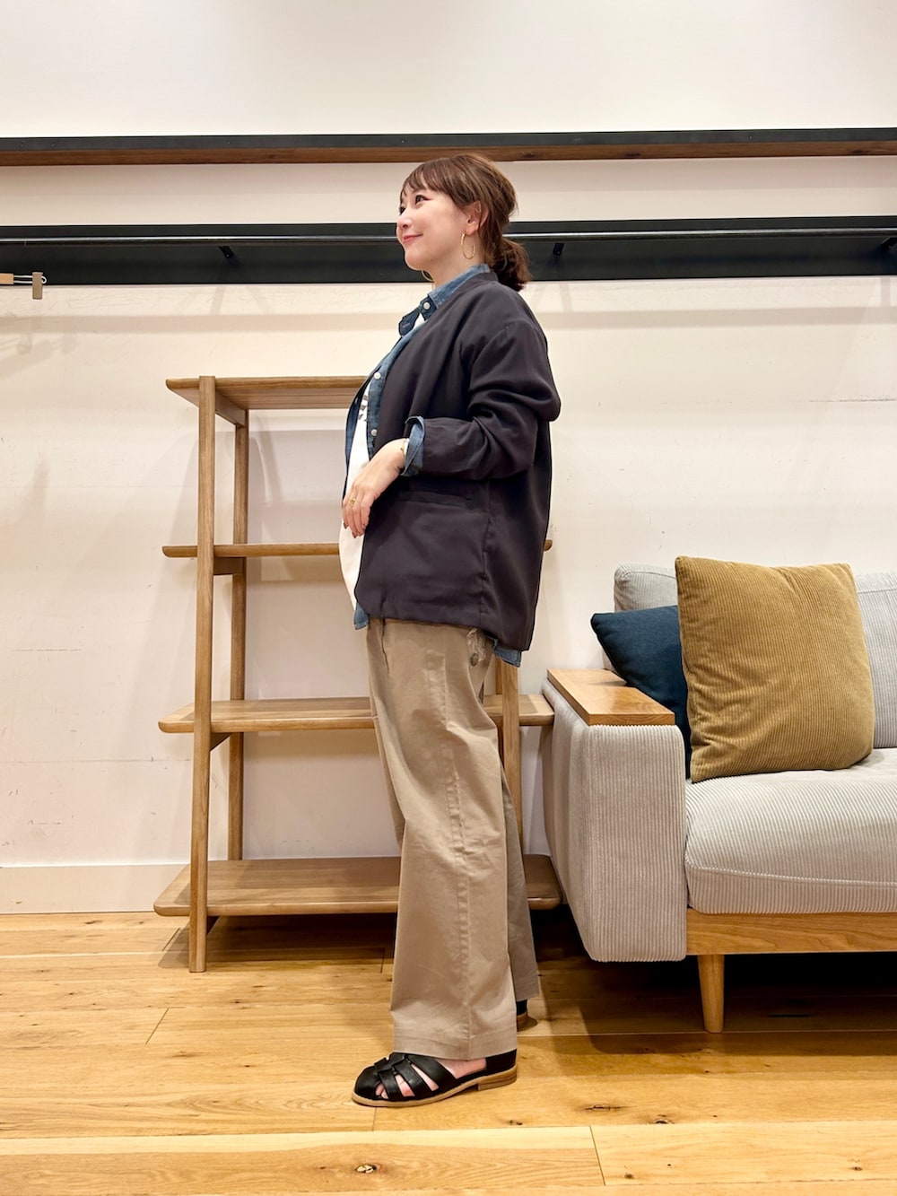 タック入りで腰まわりを自然にカバーしてくれて、トップスをインしてもバランスよくまとまります。