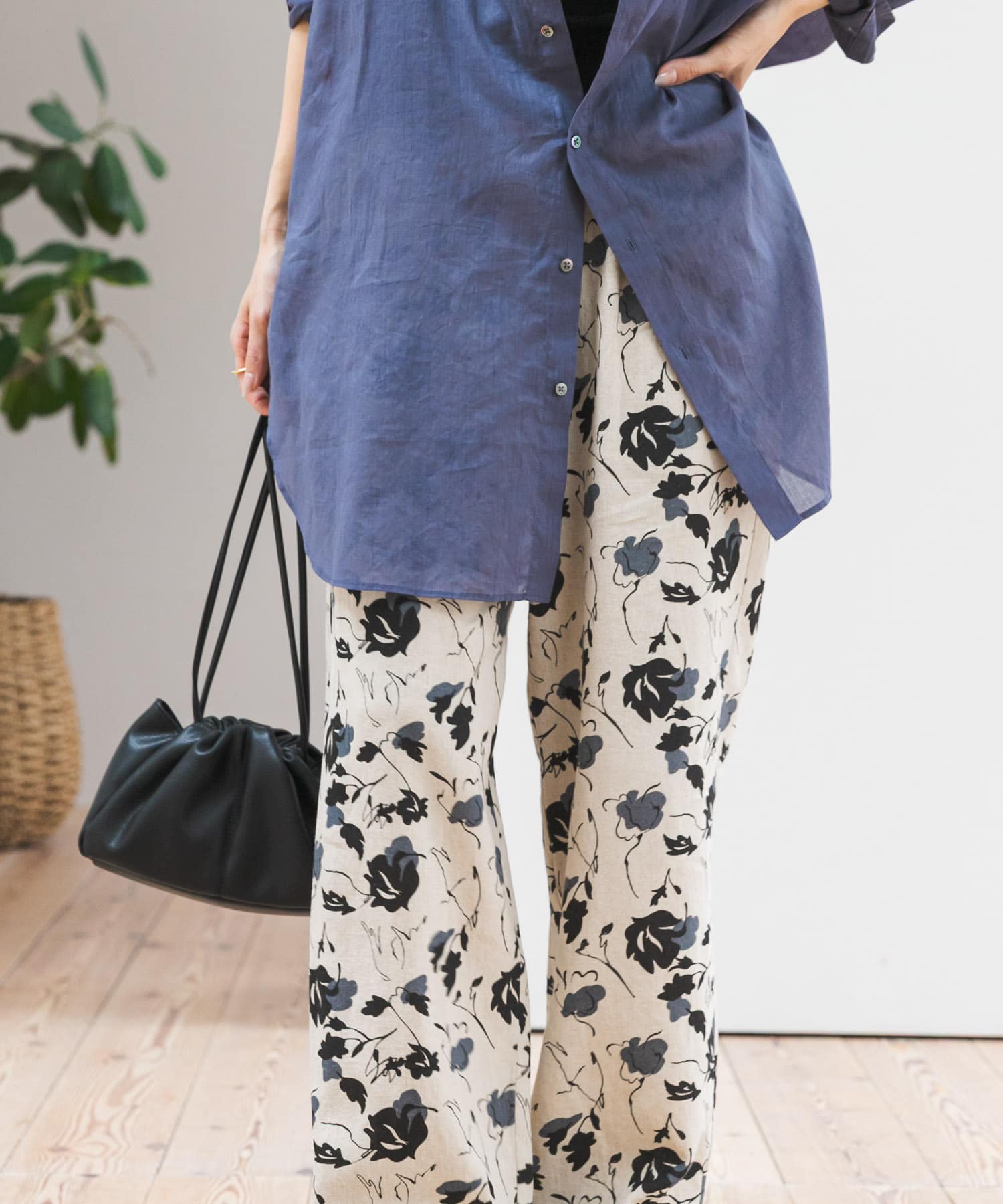リネン混の軽やかな素材感に、セルロースの落ち感でラフすぎず大人っぽくまとまります。