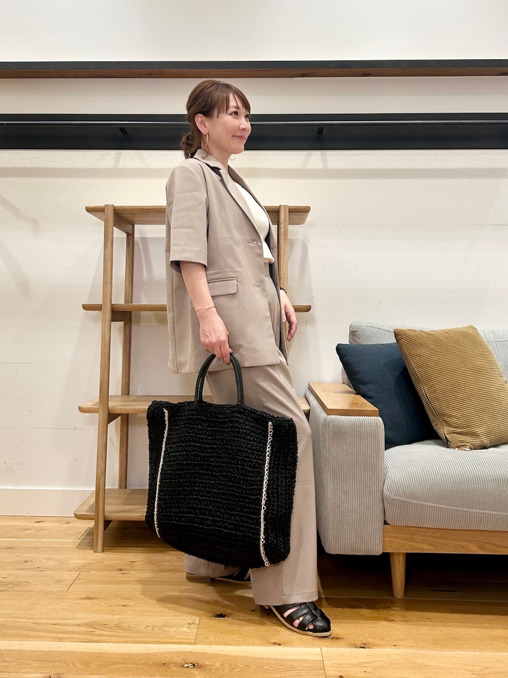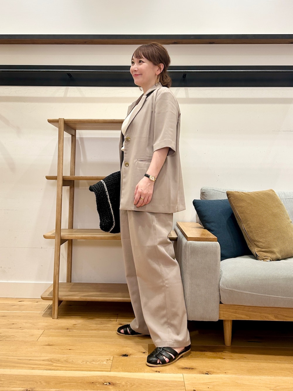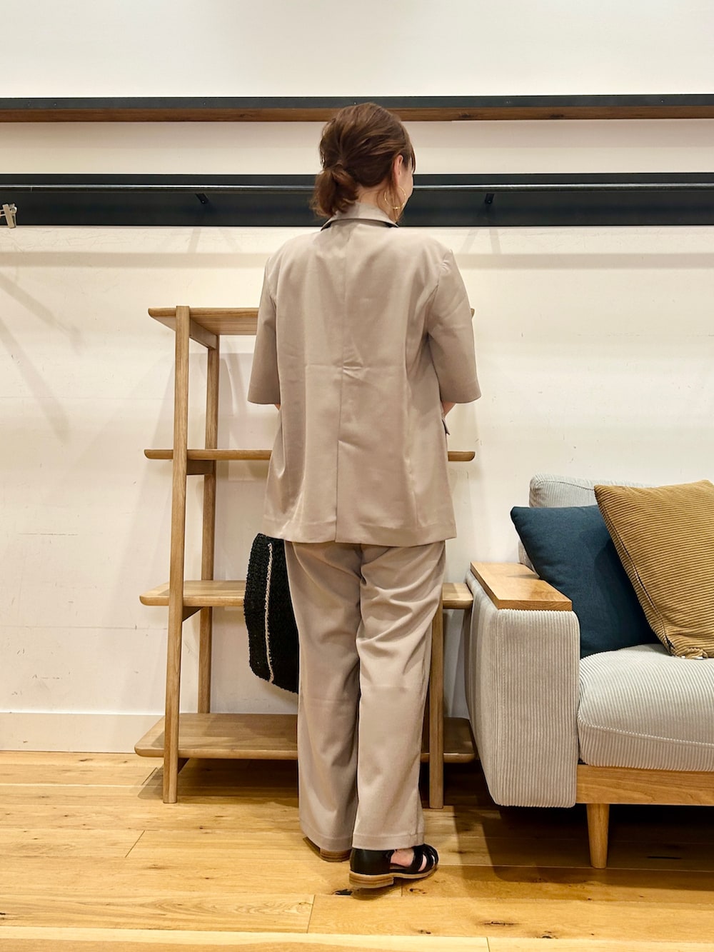 同素材のパンツと合わせれば、抜け感のあるセットアップに。単品でも、いつものコーデにさっとプラスするだけで雰囲気が締まります♪
