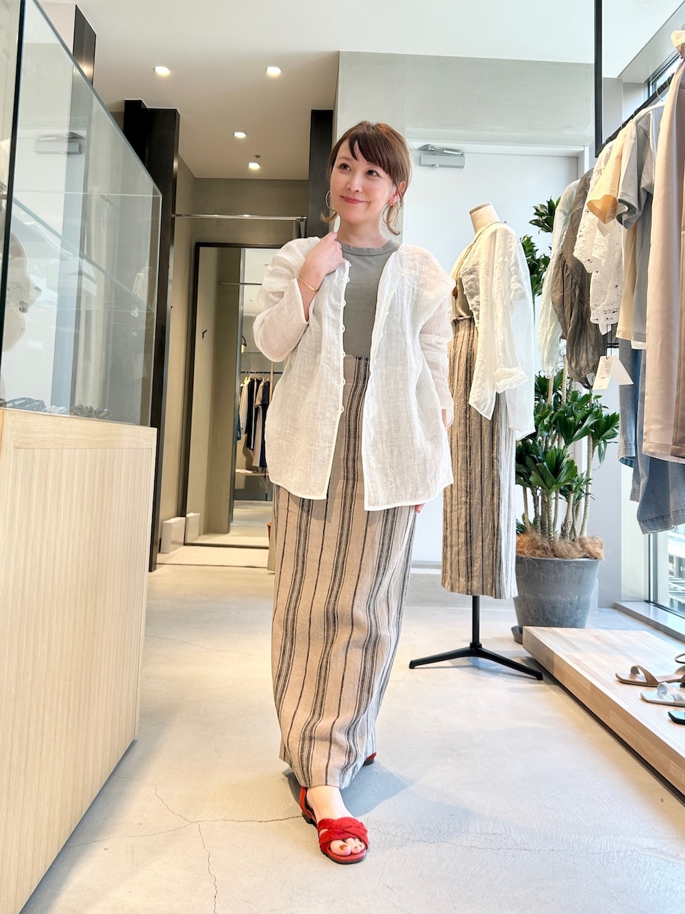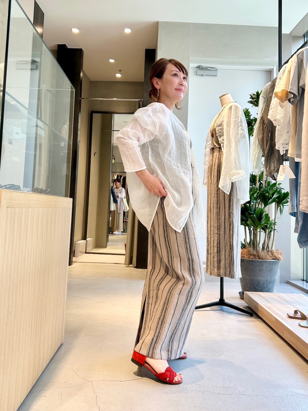 さりげない透け感と、リネンならではの軽さが魅力の一枚。