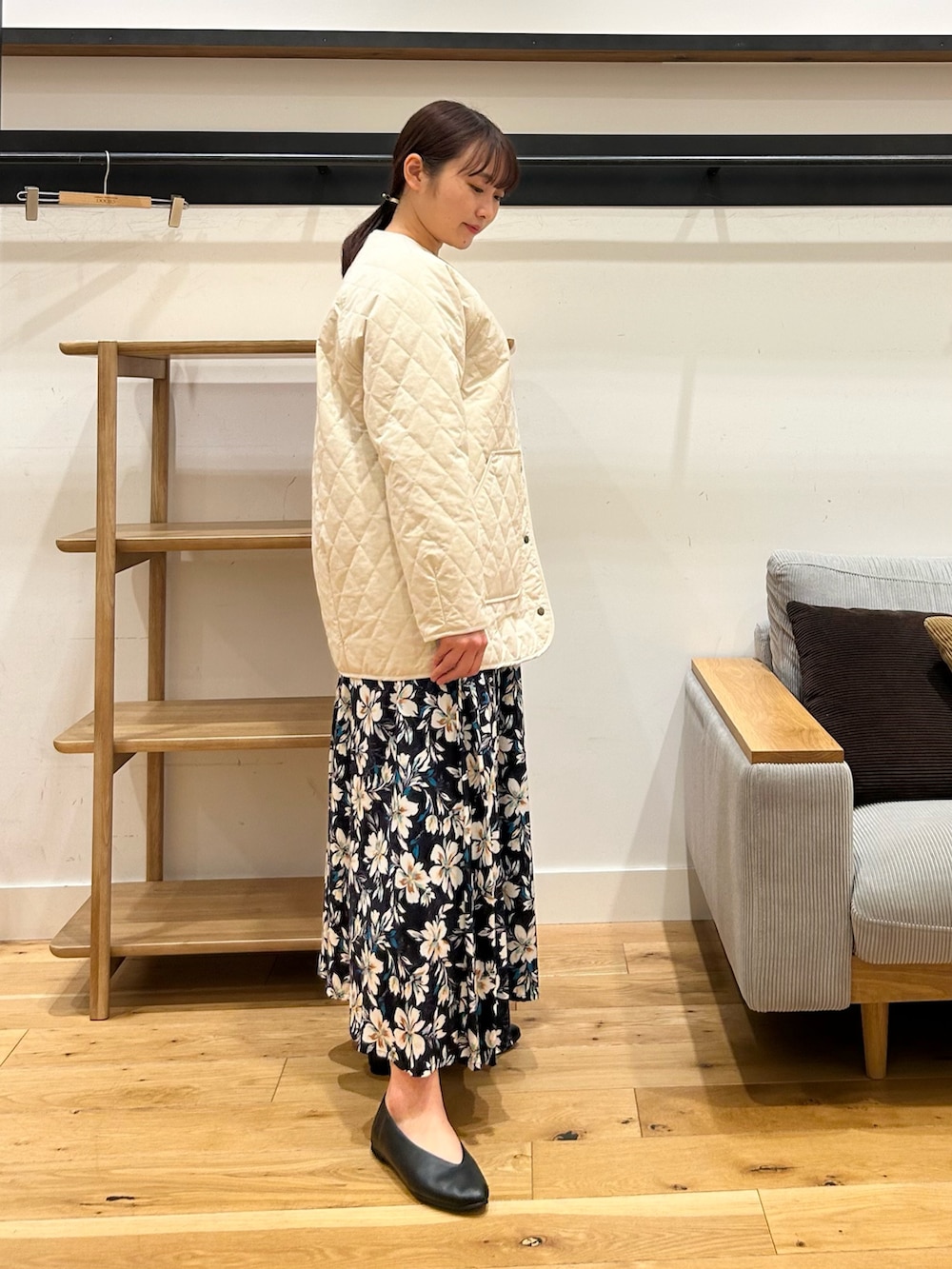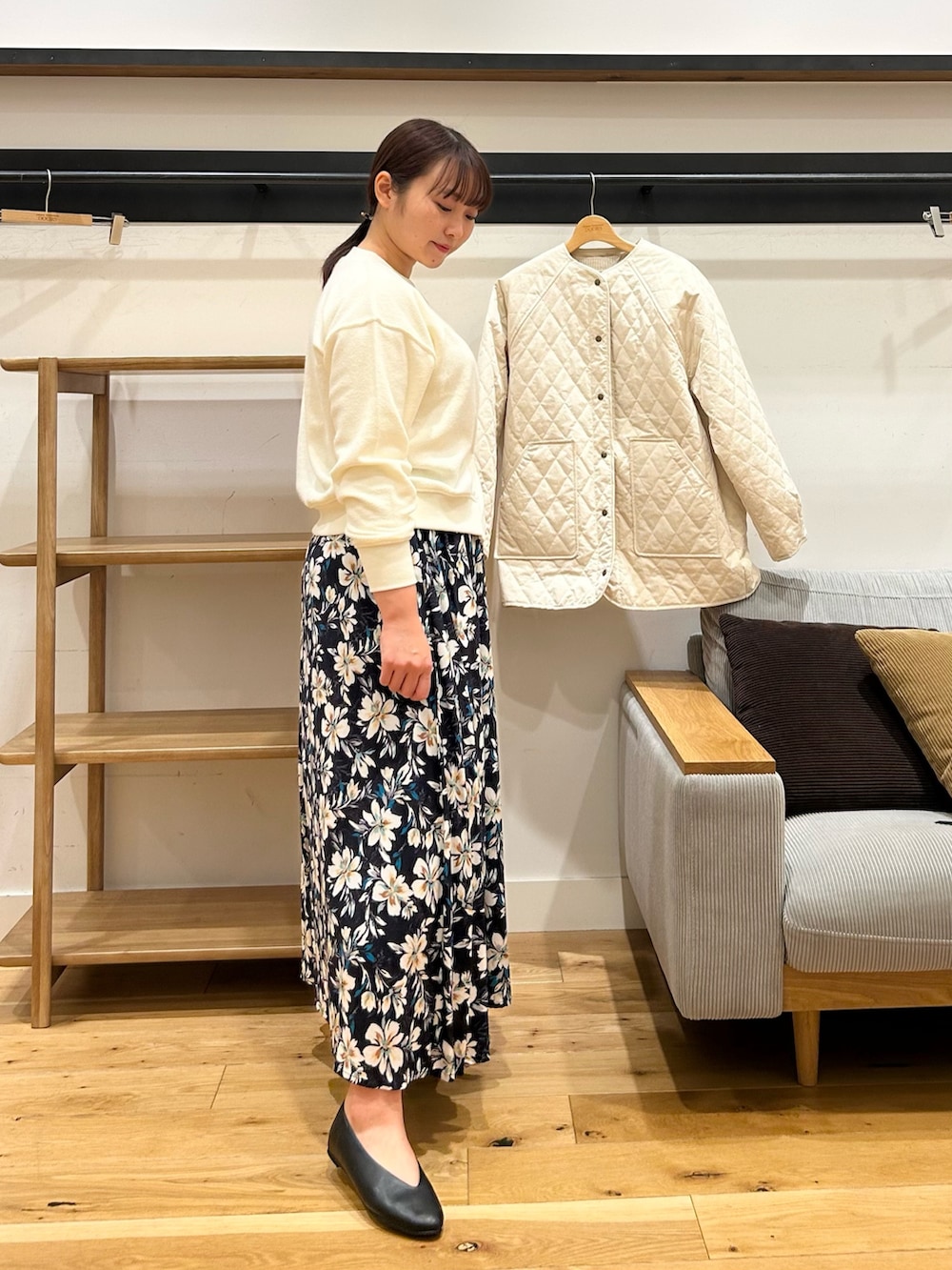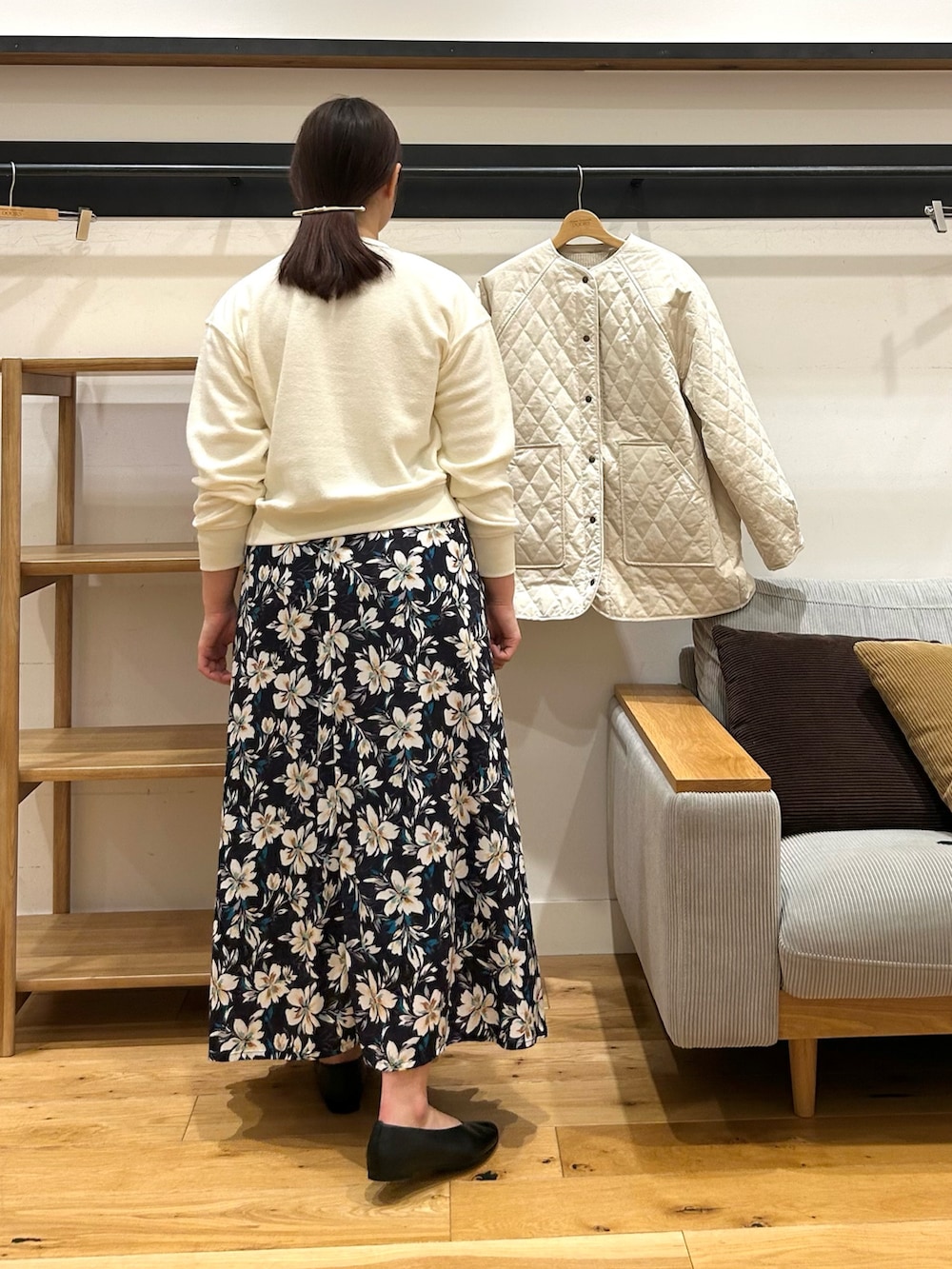 レーヨンフラワープリントスカートは、レーヨンの柔らかさが生む綺麗なドレープが、贅沢感あるアイテムです。長め丈なのでエレガントな印象を与えてくれます。