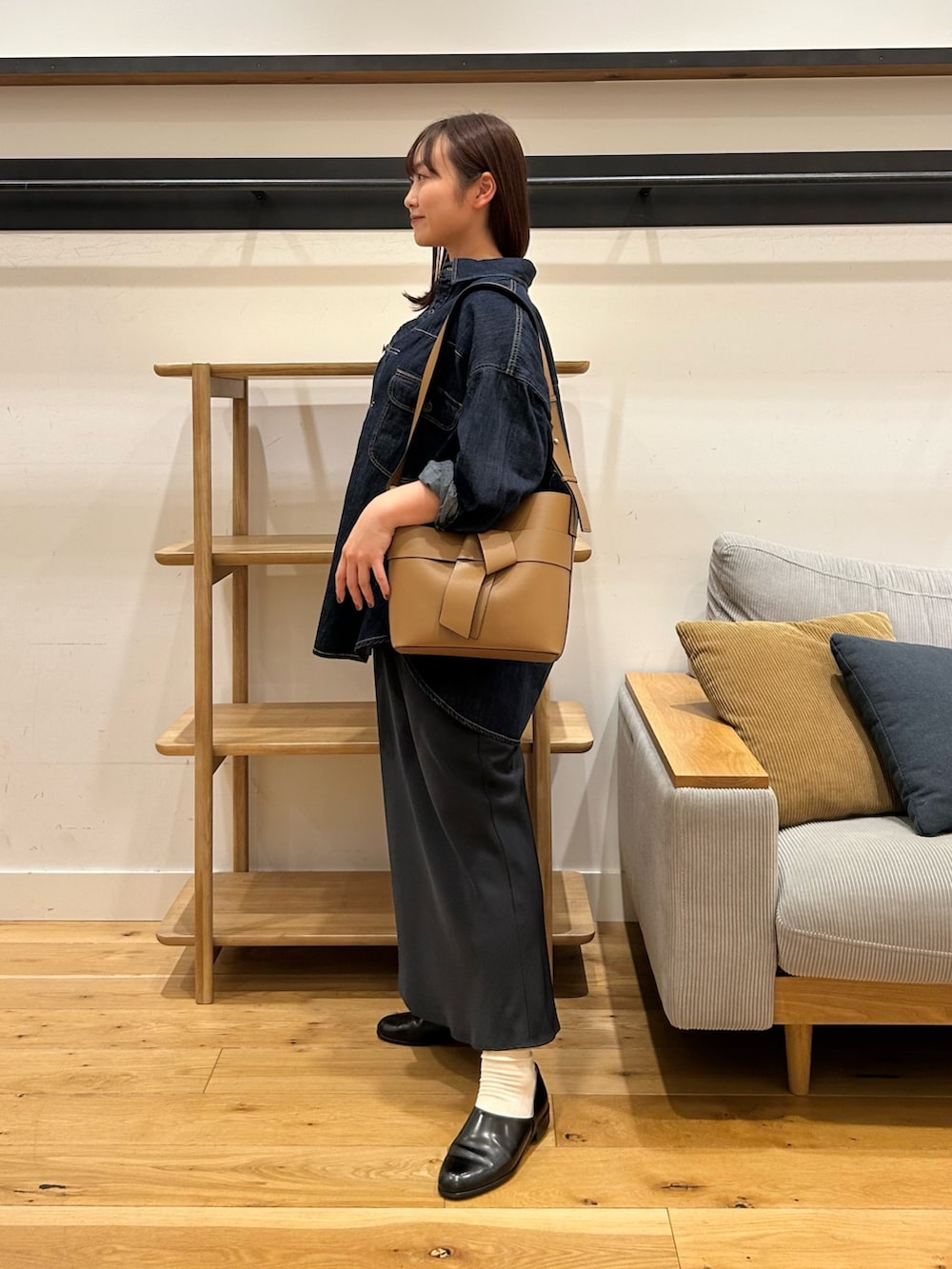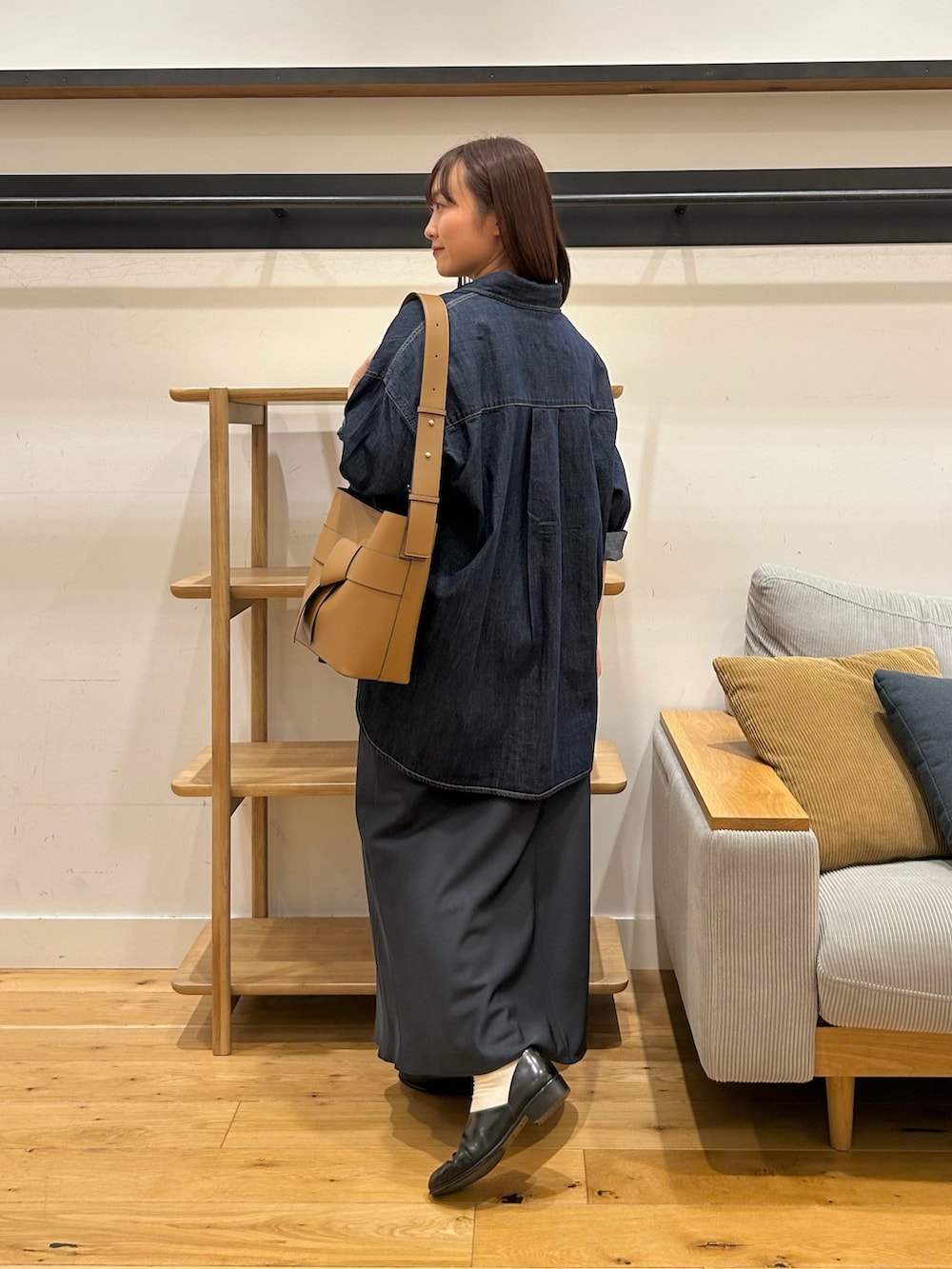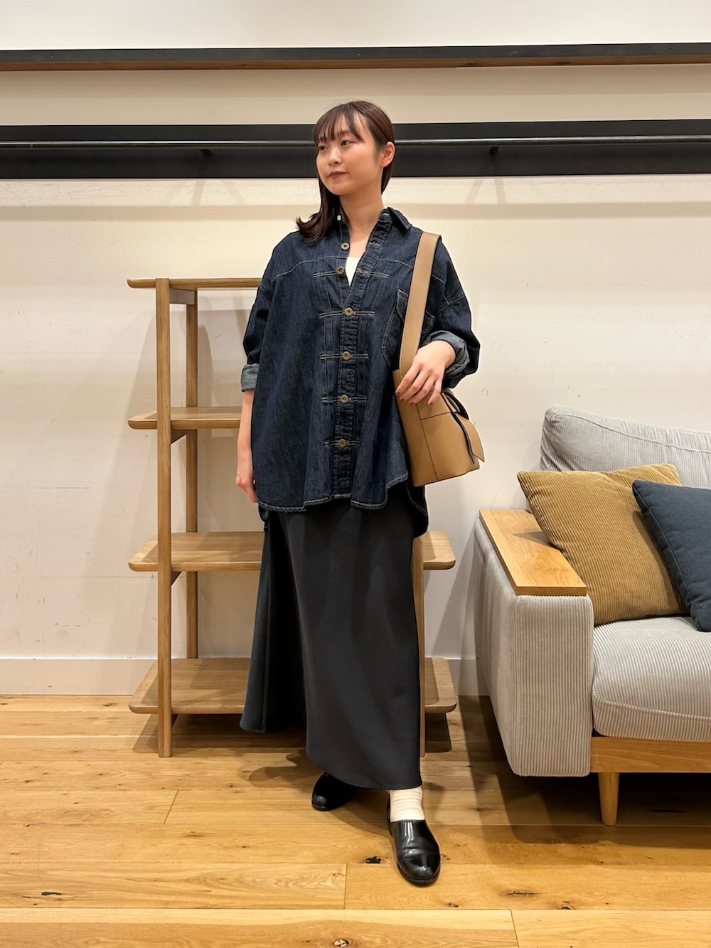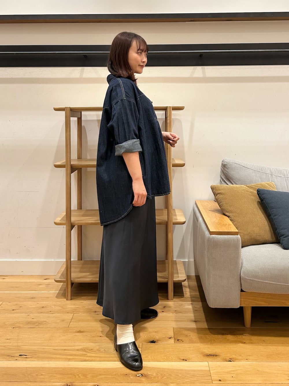 レディーライクなデニムシャツコーデ