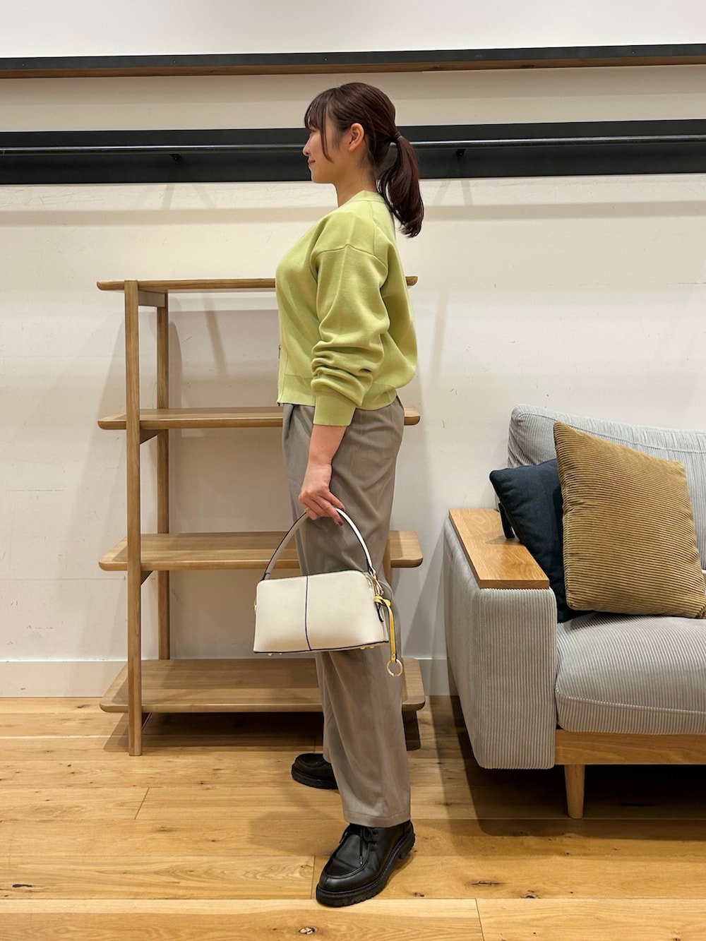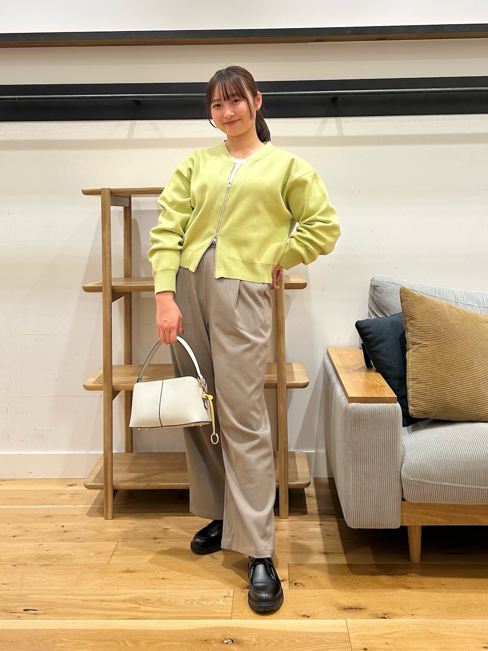 すっきりした春色が目を惹くアイテムのイチオシカラーはピスタチオです✨短めの着丈、ウエストをスッキリ見せてくれるボリュームで、スタイルアップ×着痩せ両方叶う春ニットです!ダブルジップで抜け感を出せるので、カーリーラッセルレースロングスリーブTシャツのようなシアー感あるアイテムとの相性も良いです。