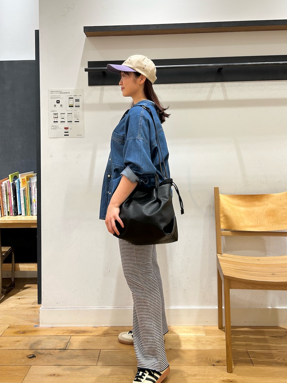 ストレスフリーにおしゃれを楽しめるラフアイテムです。股上は深めなので、トップスはインせず体型をカバーできるアイテムを持ってくるのが着痩せのポイントです💡