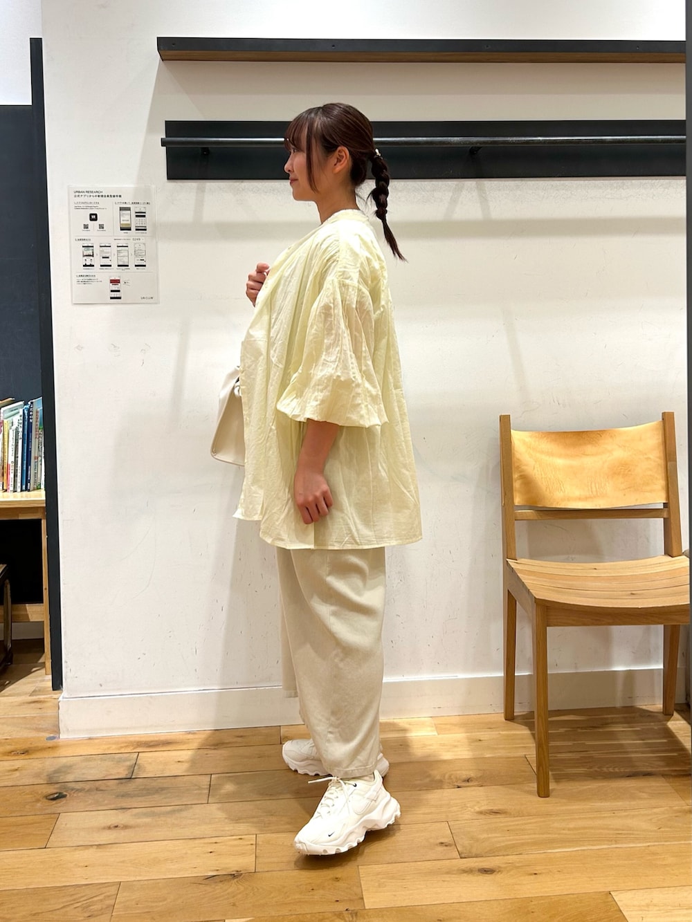 どこから見てもふんわりシルエットな春ブラウス☁️長めの着丈なので、小柄さんは前を開けたりボトムのボリュームを抑えたりすると大人っぽく着こなせる印象です。
