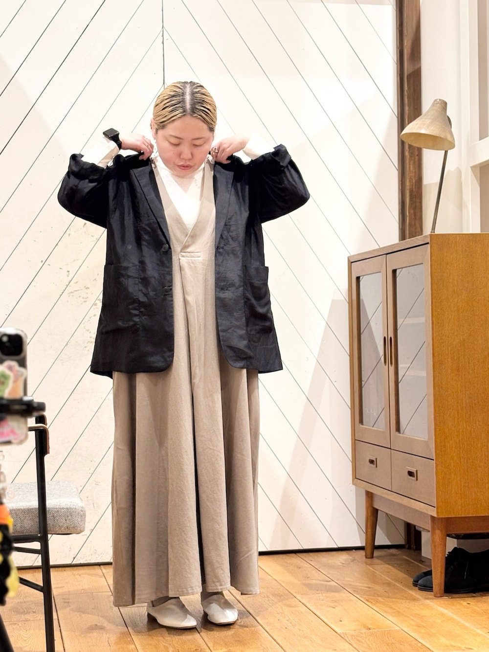 袖を捲り上げることでキレイめにも🙆♀️