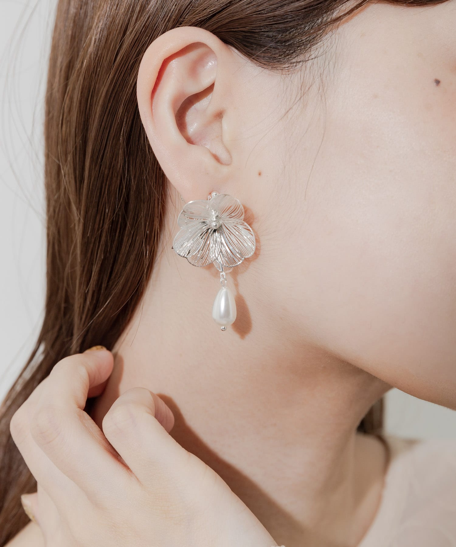 SMELLYメタルフラワードロップパールイヤリング- 着用カラー: