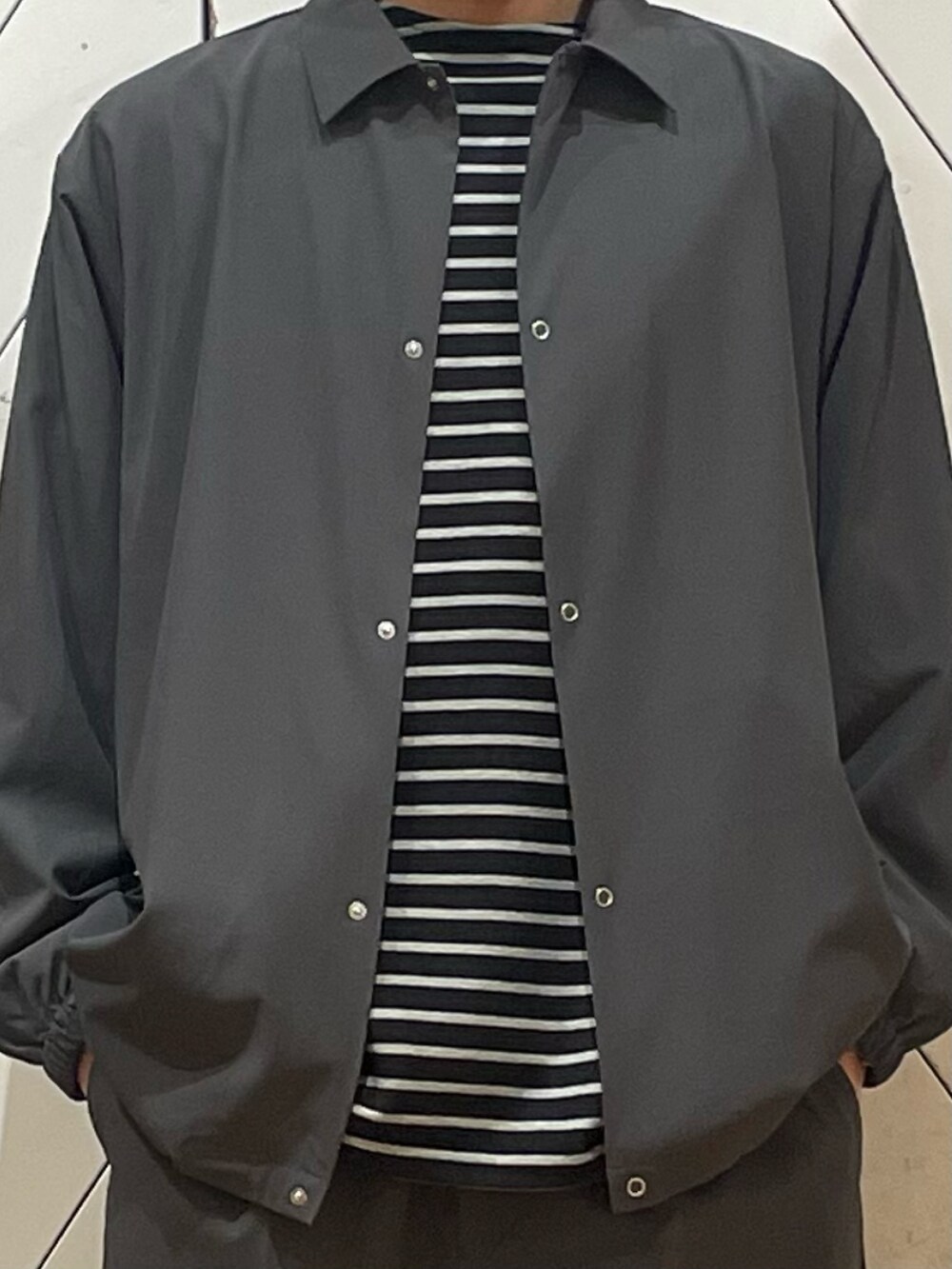 ・コーチジャケットをベースにした襟デザインで、程よい抜け感とこなれた印象を演出。