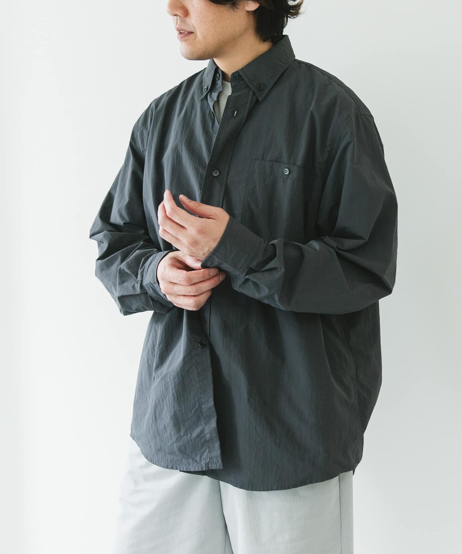 ナイロンタッサー ボタンダウンロングスリーブシャツ