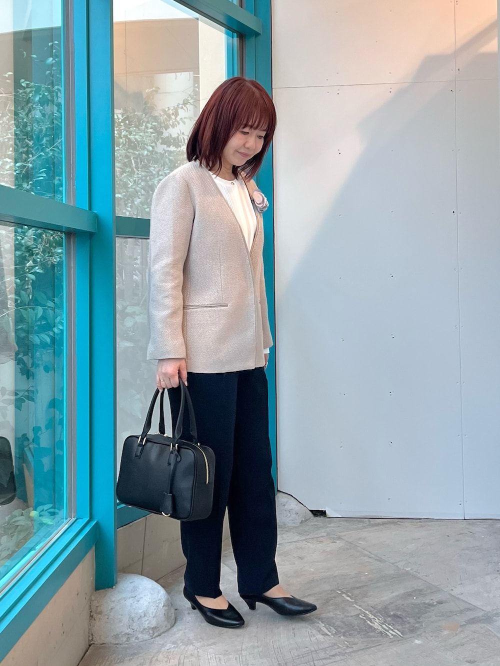 明るいカラーのジャケットで春らしい華やかな印象に✨