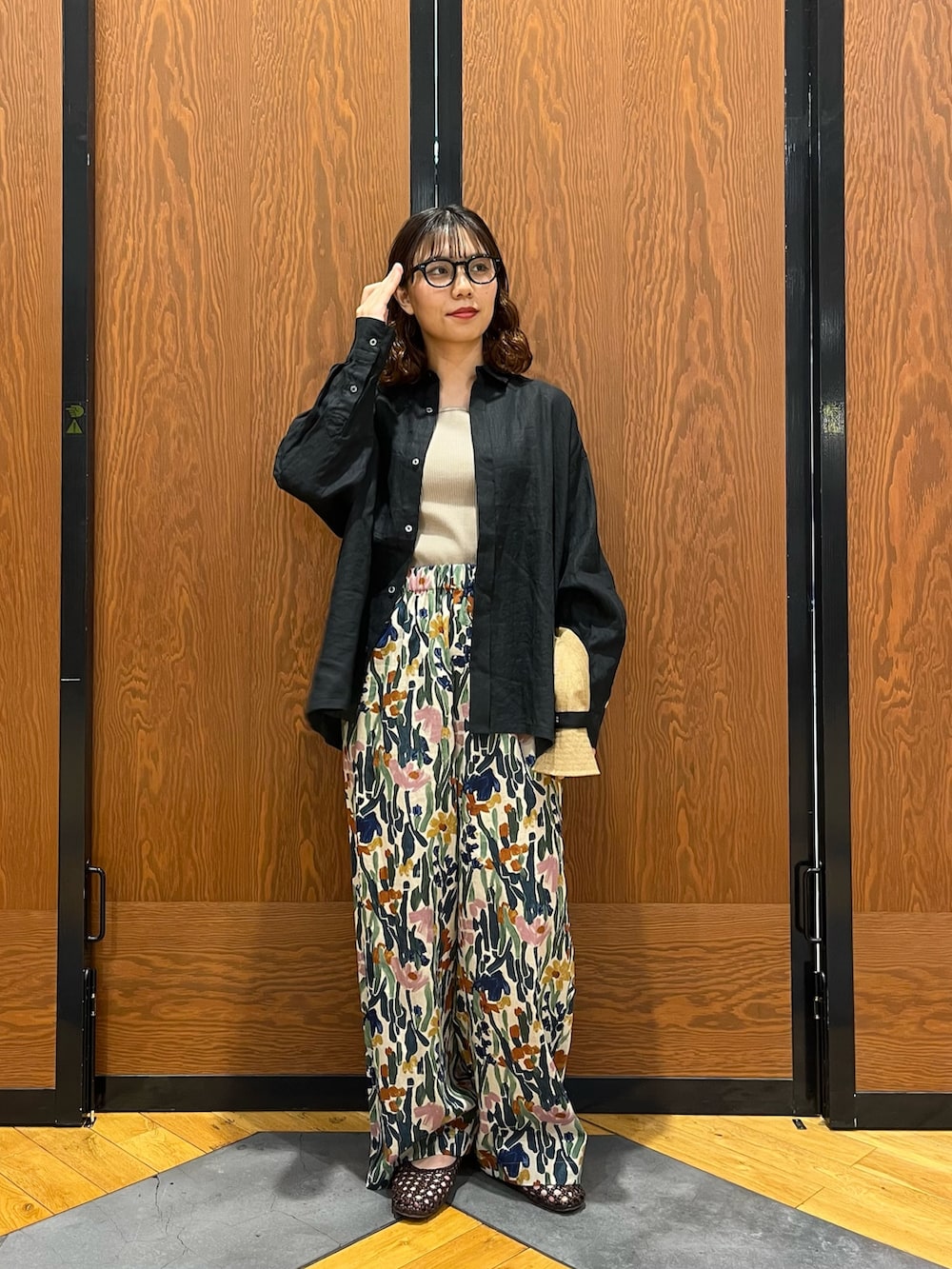 かぐれコットンリネンプリントイージーパンツ- カラー: