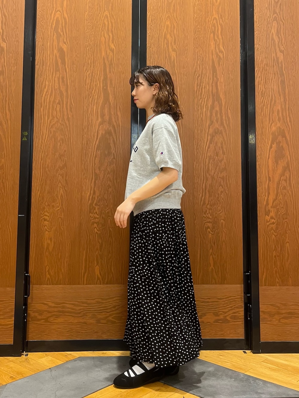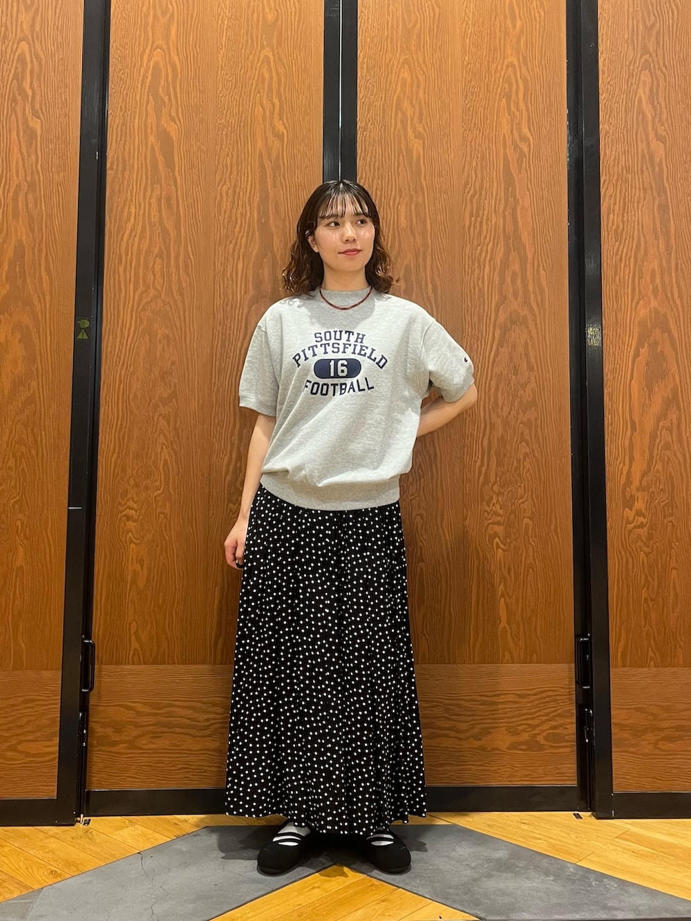 カジュアルなロゴですが、スカートと合わせて甘めなスタイルも可愛いです⭐︎