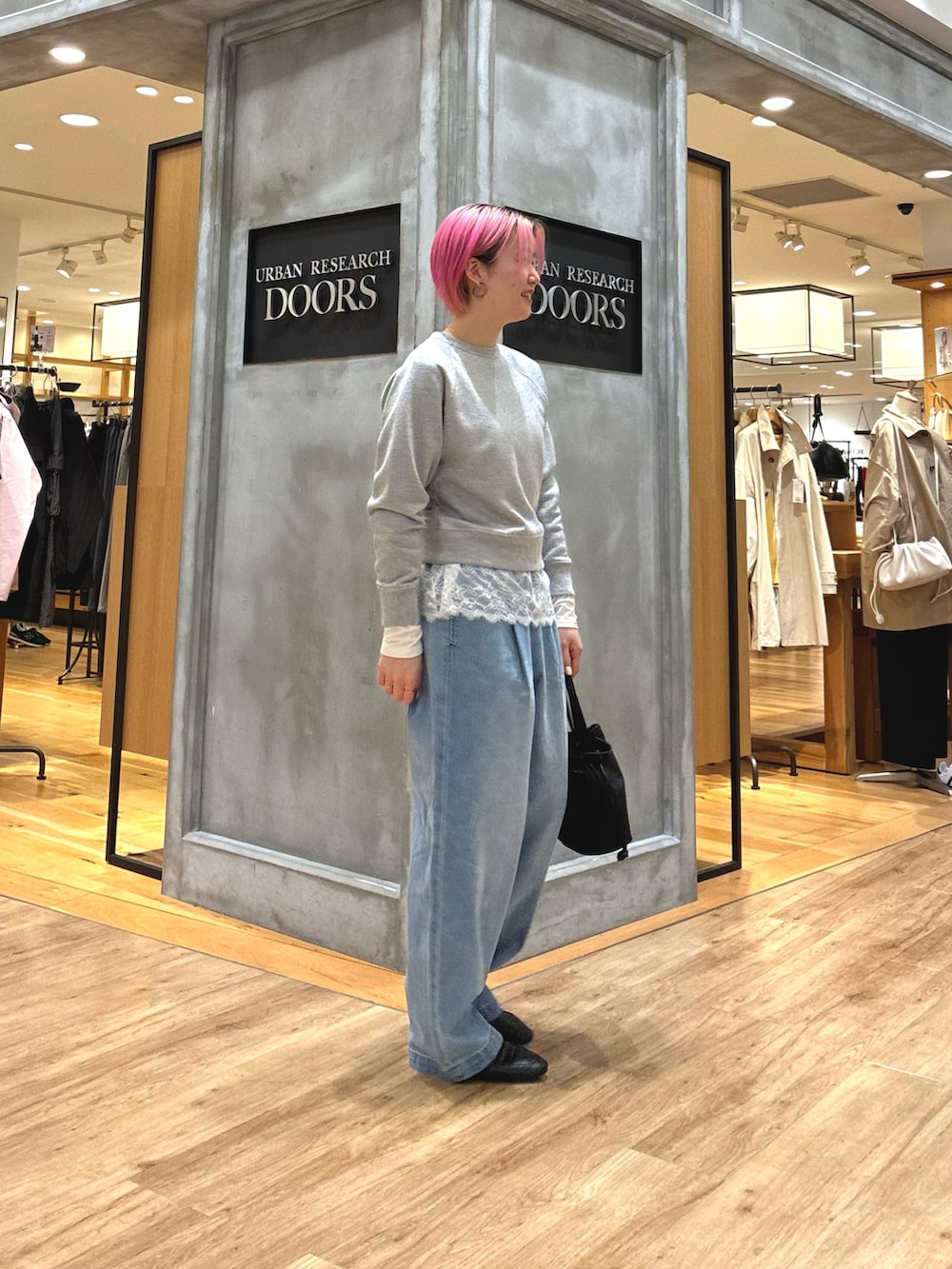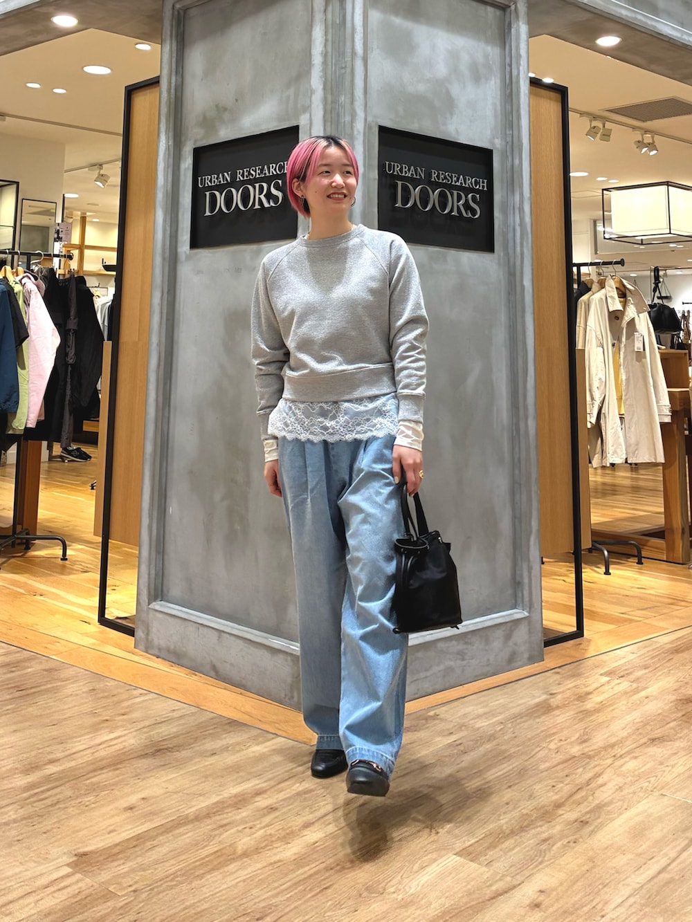 短丈トレーナーにレイヤードをするとシンプル過ぎないちょっと上級者コーデになりますね🙆♀️
