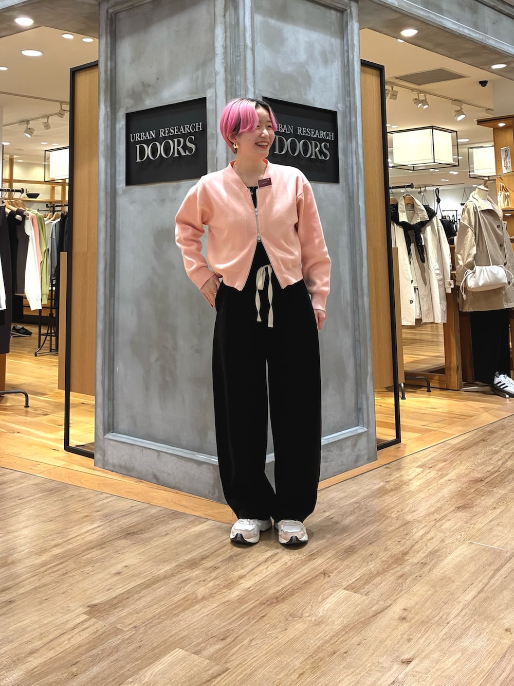 一気に春っぽくなるピンクカーデは、ダブルジップなので着回しができちゃいますね!