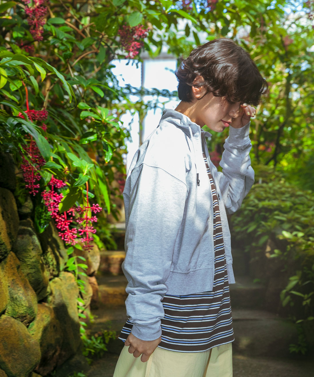 そしてハーフジップスウェットは、ダブルジップで、レイヤードの着こなしを楽しめます!