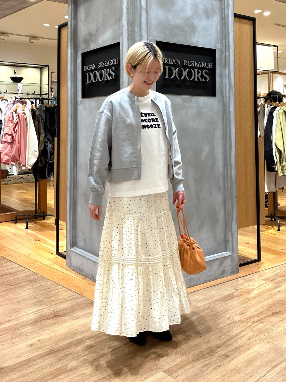 春っぽいURのスカートは、デザインもシンプルすぎず、ふわっと動きも出る可愛いスカートでした!!