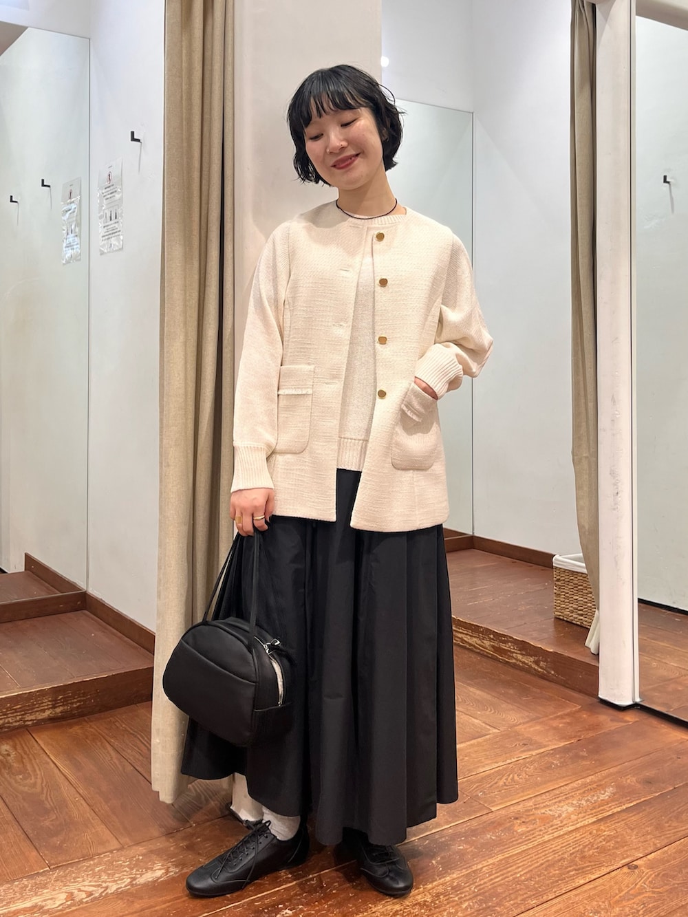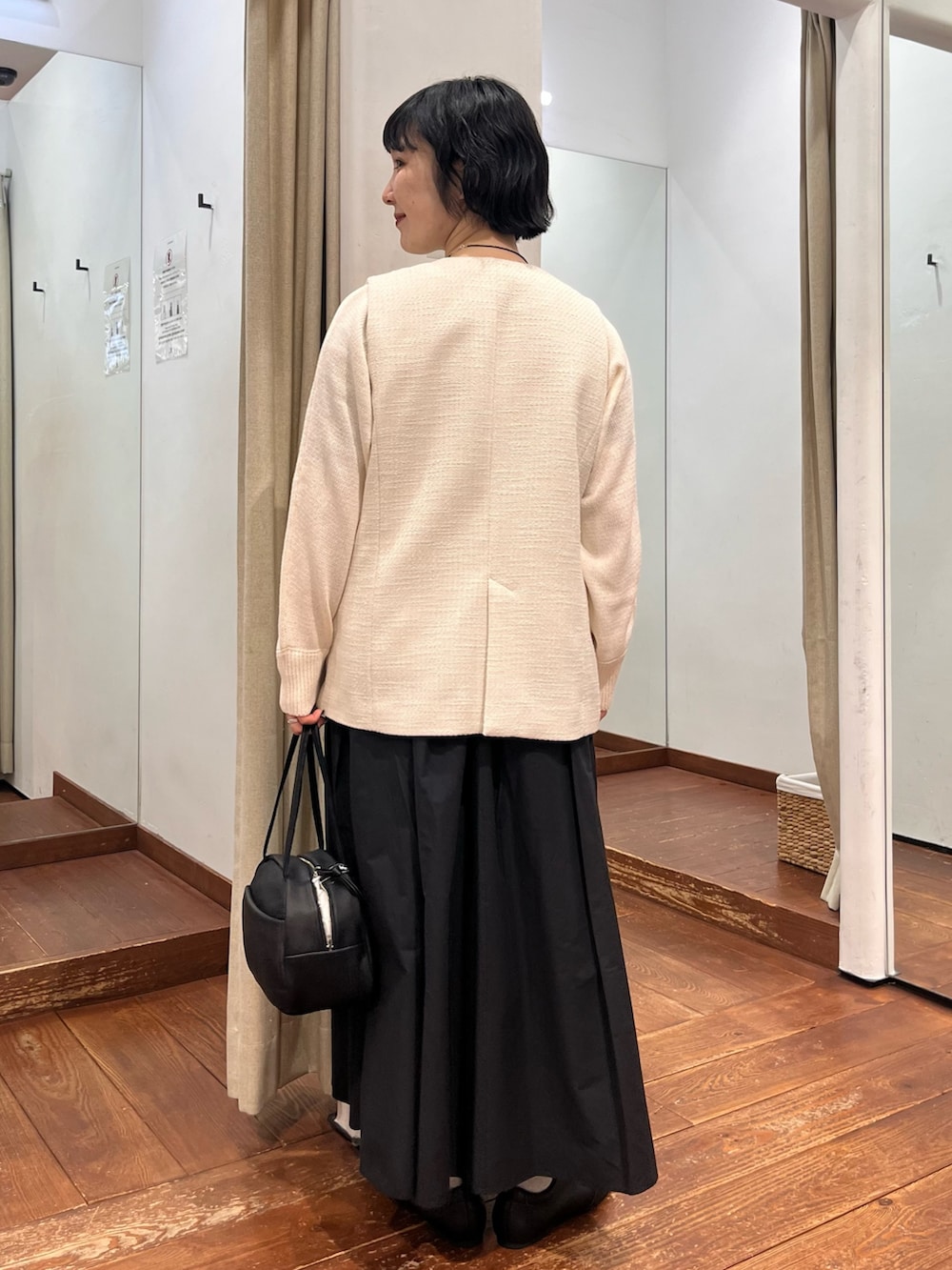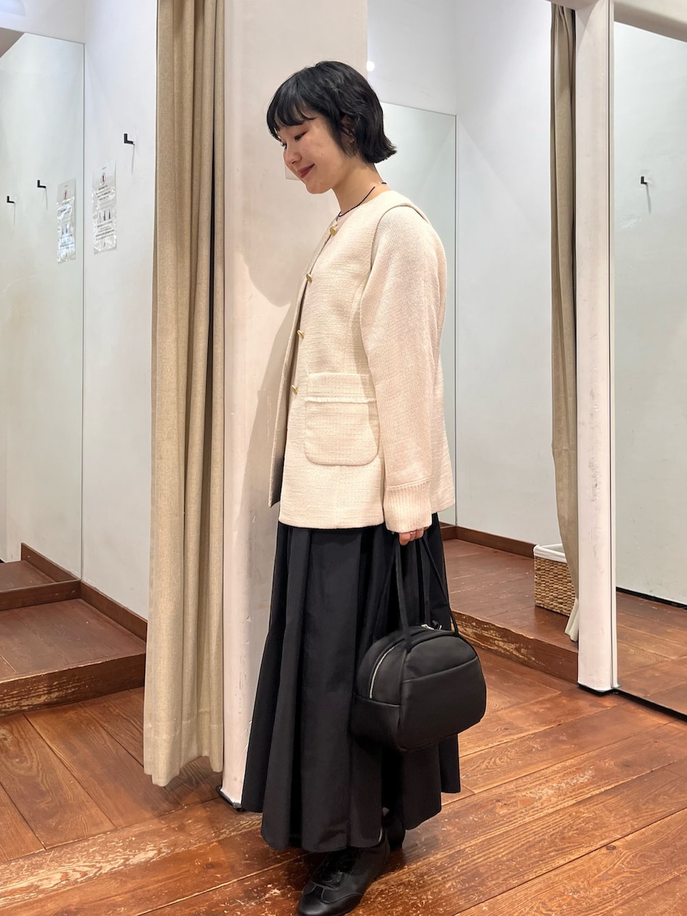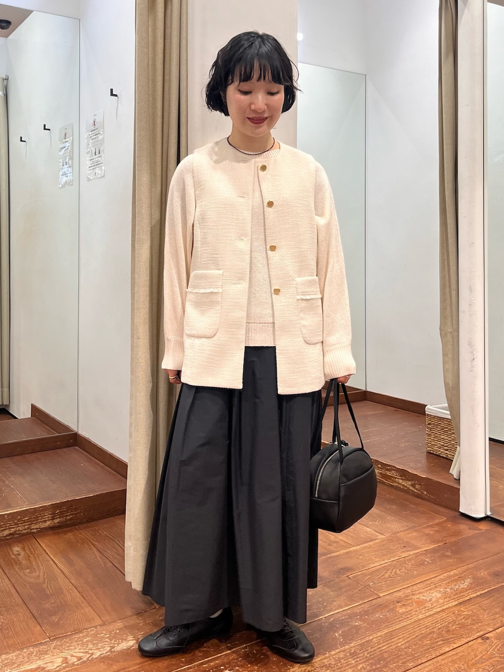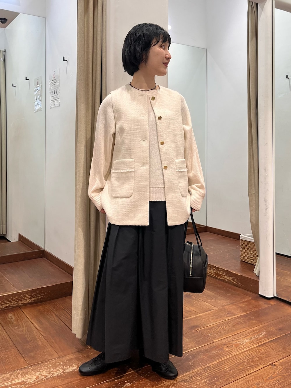 ツイードがコーデを一気に上品な雰囲気にまとめてくれます。