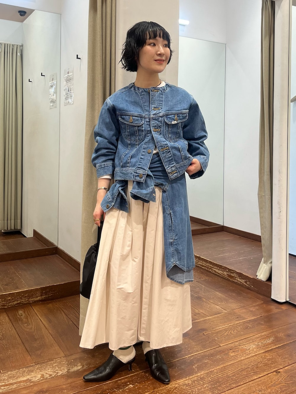 スカートでキレイめにも。セットアップでデニムオンデニムしてもかっこいいです!
