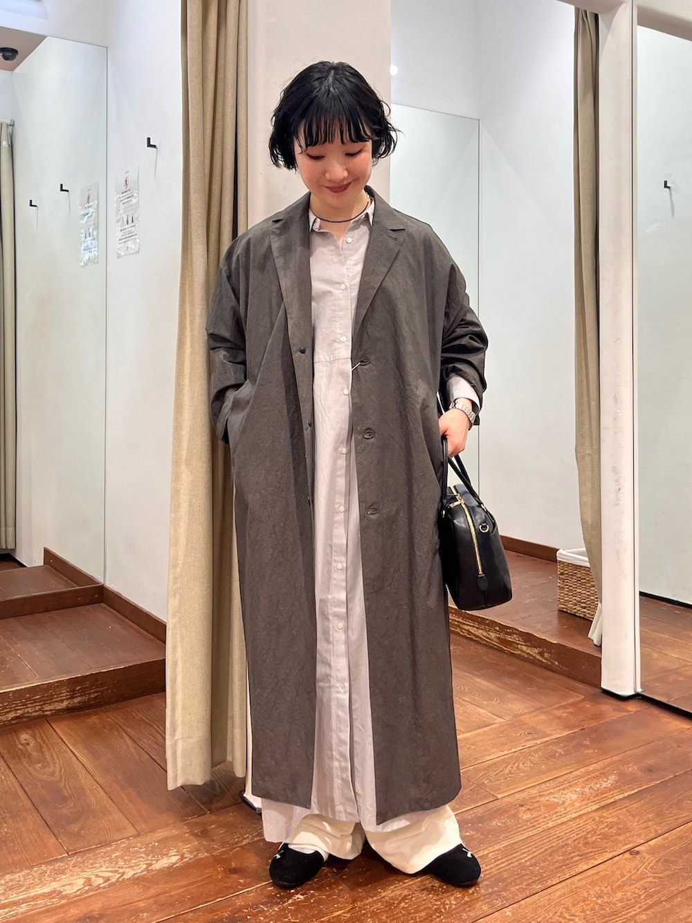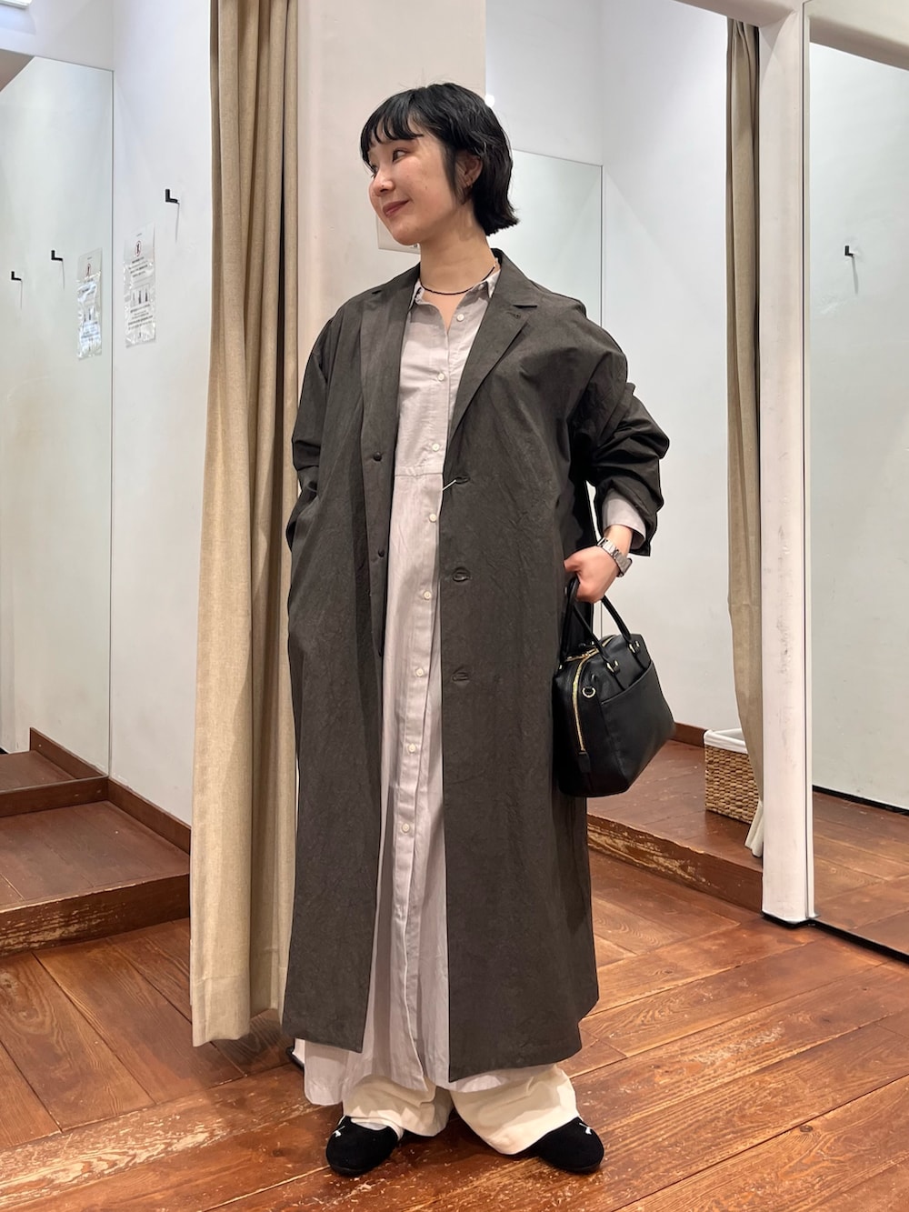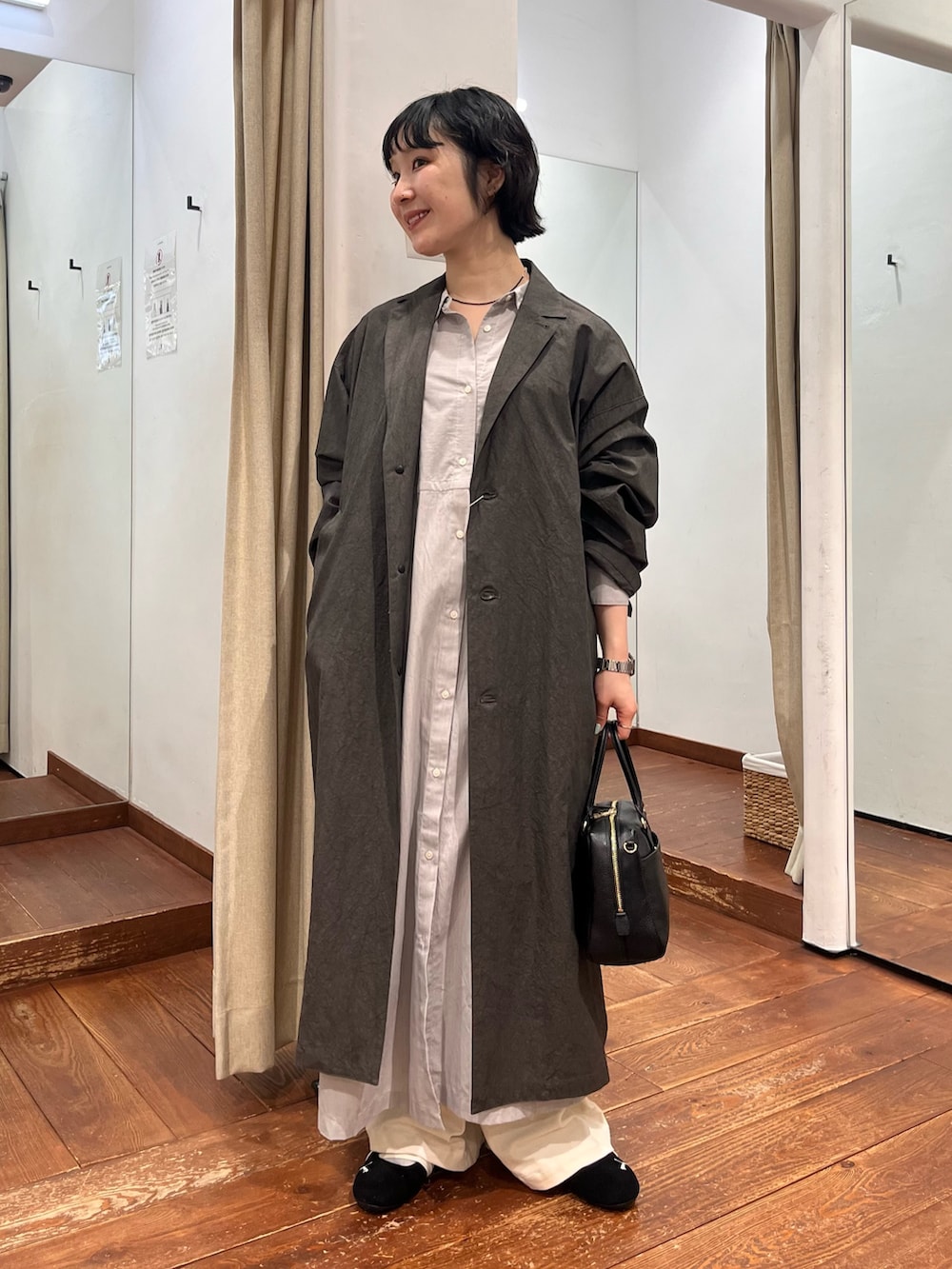 1枚でもキマるシャツワンピ。前開きで着用もできます。ボトムスとのレイヤードも程よくしやすいです◎ガバッと着れるサイズ感が万能で良いですね!