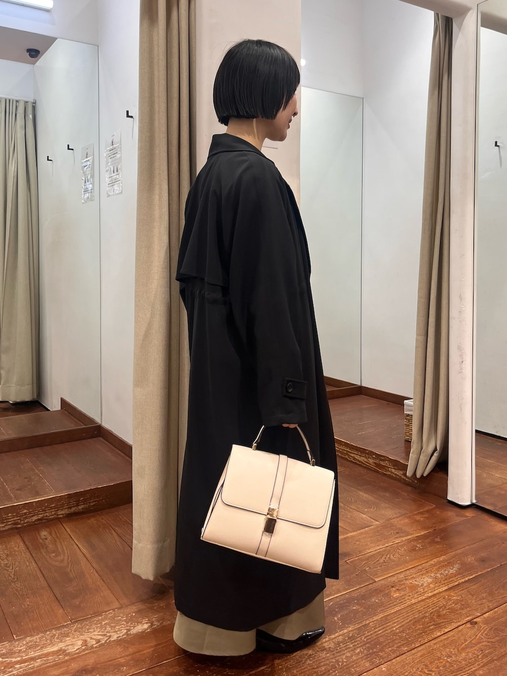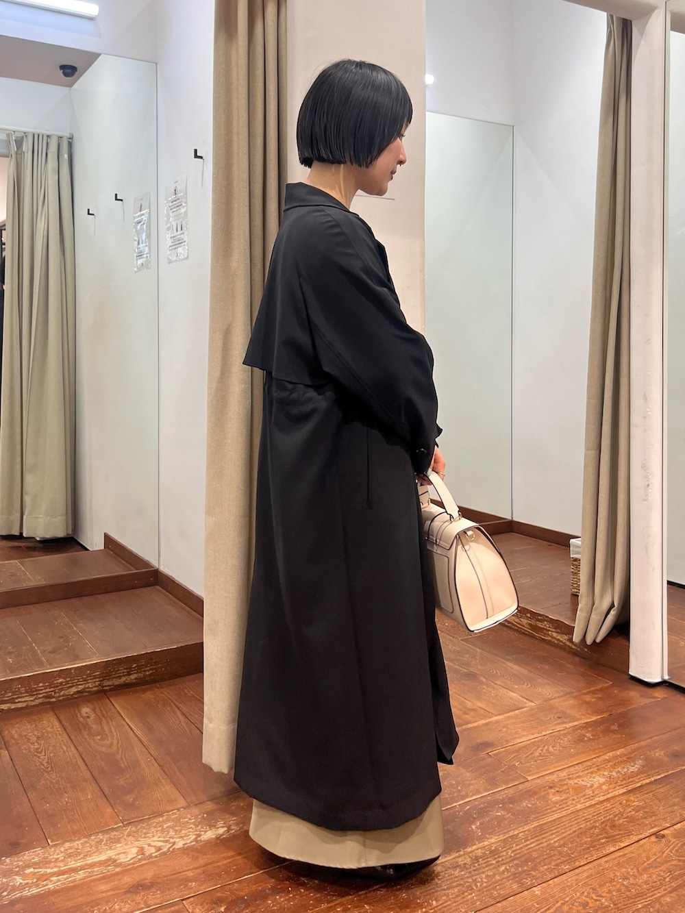 あえて38で大きめにガバッと着用してみました。撥水加工を施しており、急な悪天候にも対応できるのでスーツやセレモニーシーンにも大抜擢。