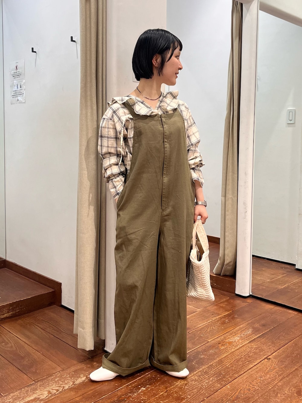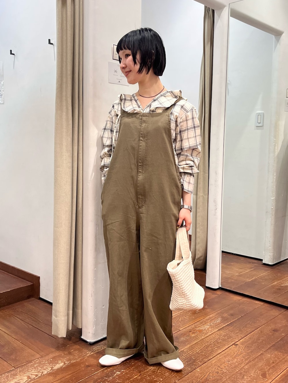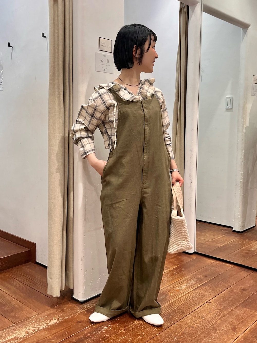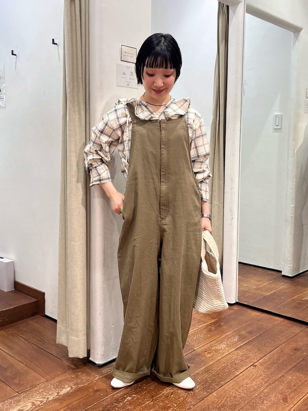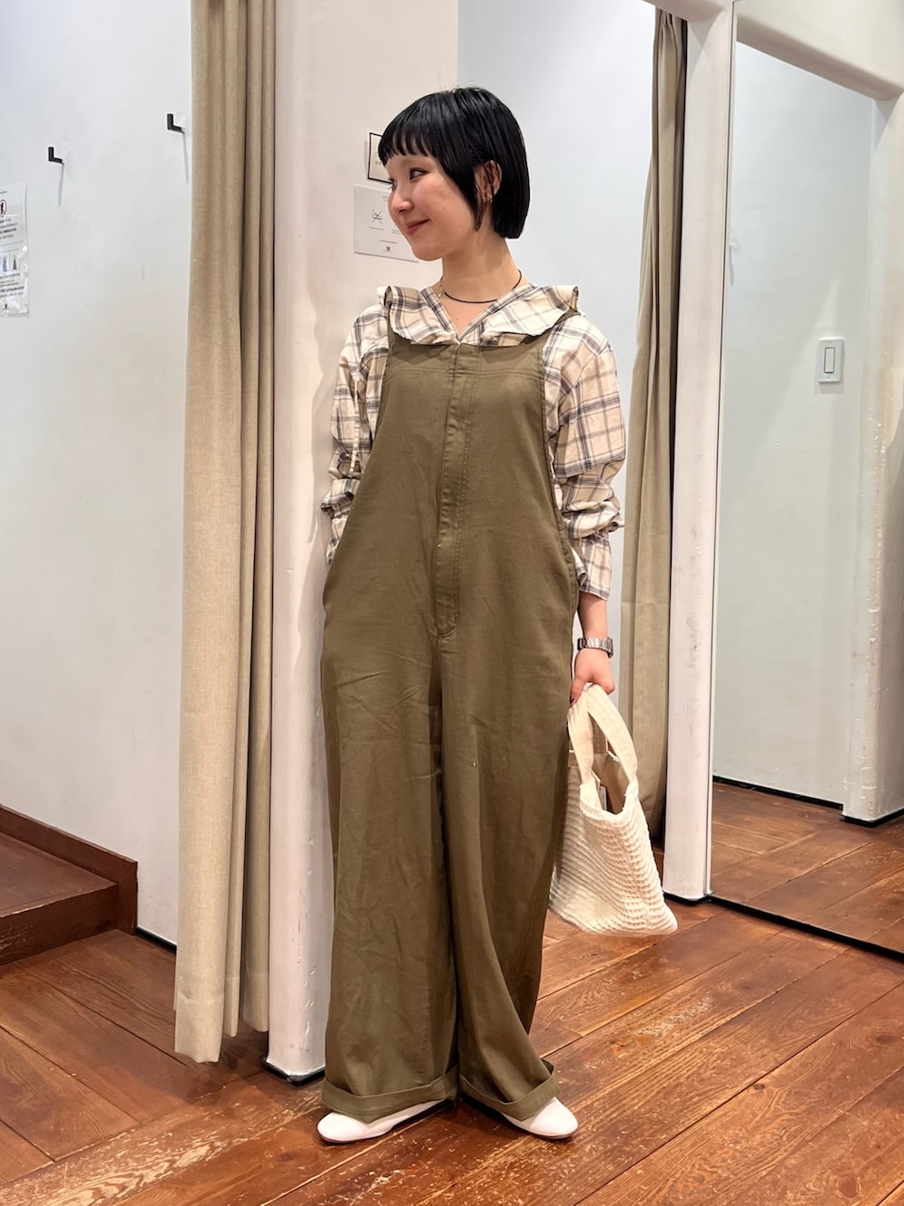 派手すぎないナチュラルなチェックが落ち着いた雰囲気に。大胆なフリルもスタイリングのポイントになってくれます。1枚で着映えしますがサロペットやカーディガンのインナー使いにも抜群ですね❁⃘