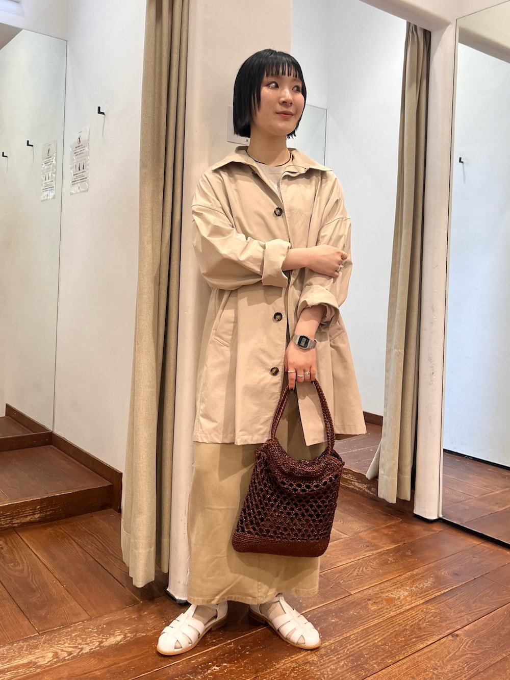 ホワイト×ベージュのワントーンをたのしむ春コーデにまとめました🫧