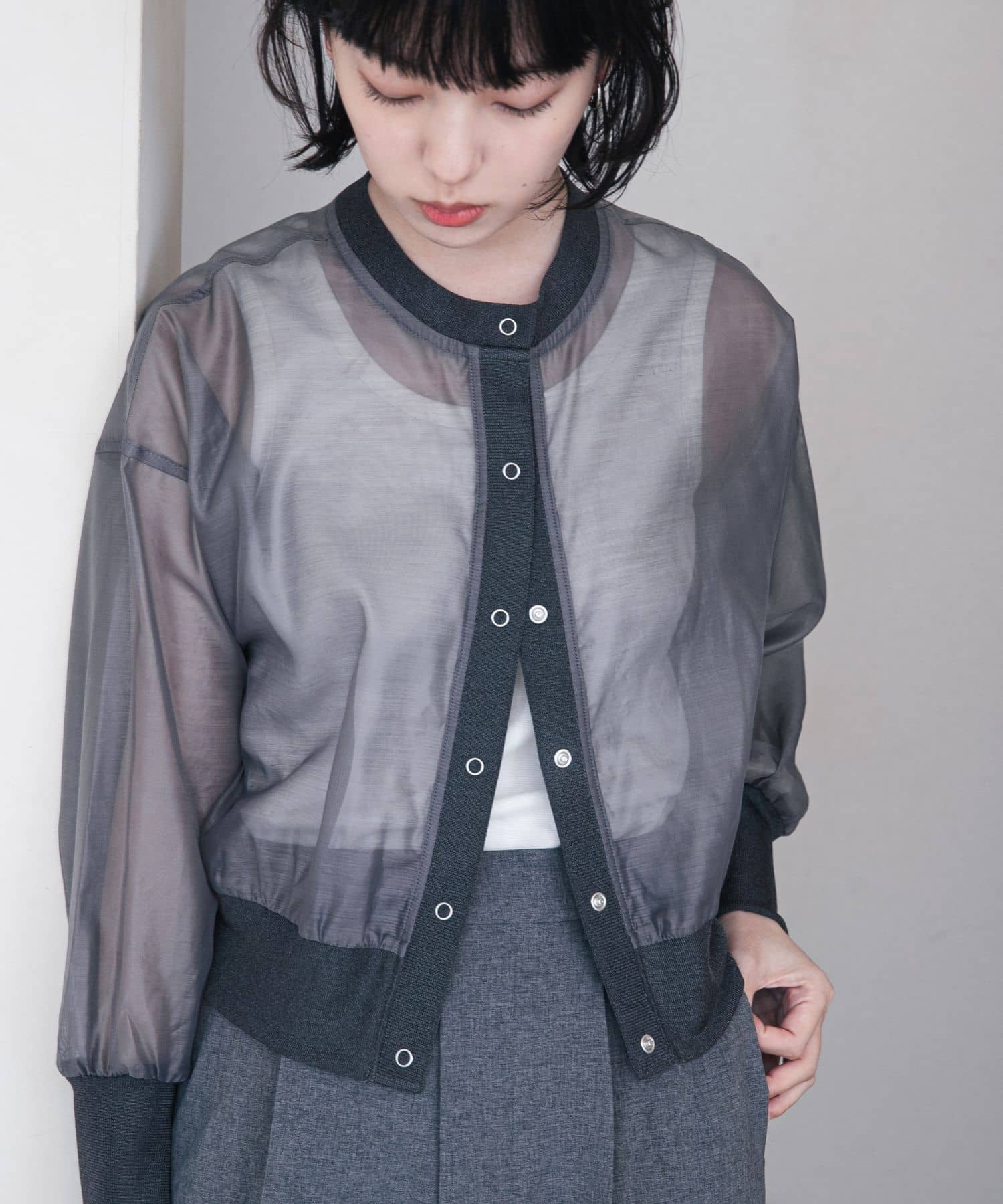 裾にドロストがあり絞ると形を変えていただけるのでどのようなボトムスにも◎