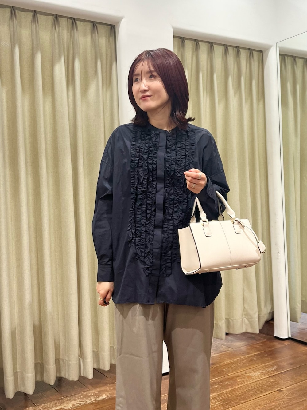 ブラウスはフリルが上品で大人らしい可愛さがあります。こちらのカラーをリアルバイしましたが色んなシーンで使えるのでおすすめです◎