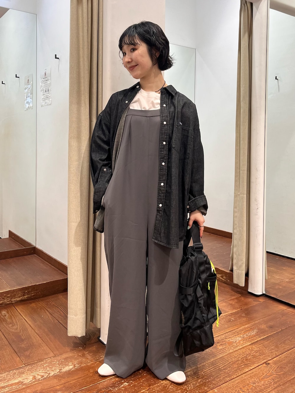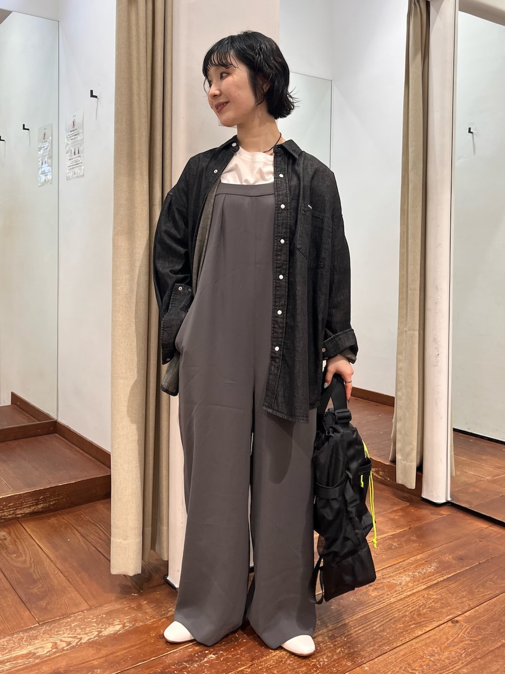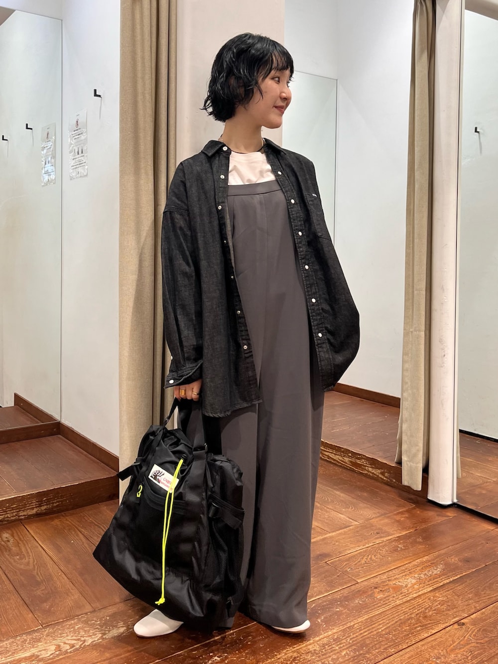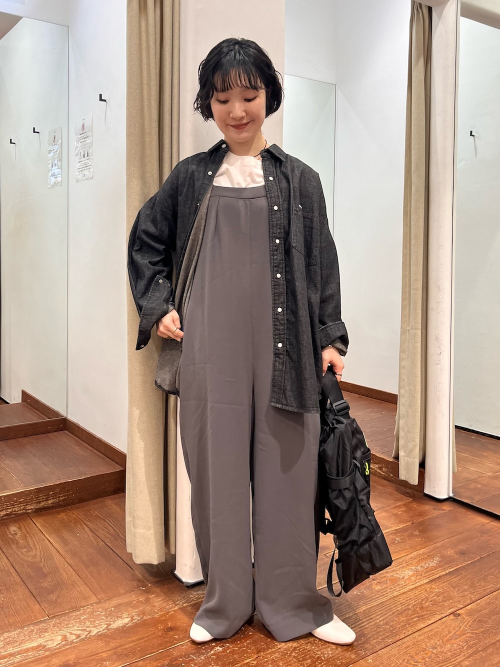 すっきりしたシルエット、落ち感のあるジョーゼット生地がサロペットでも抜け感あるスタイルにしてくれます。
