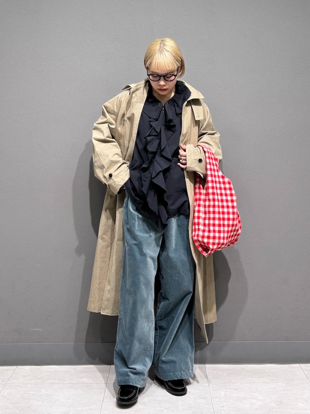 ボトムとバッグで色を効かせました。