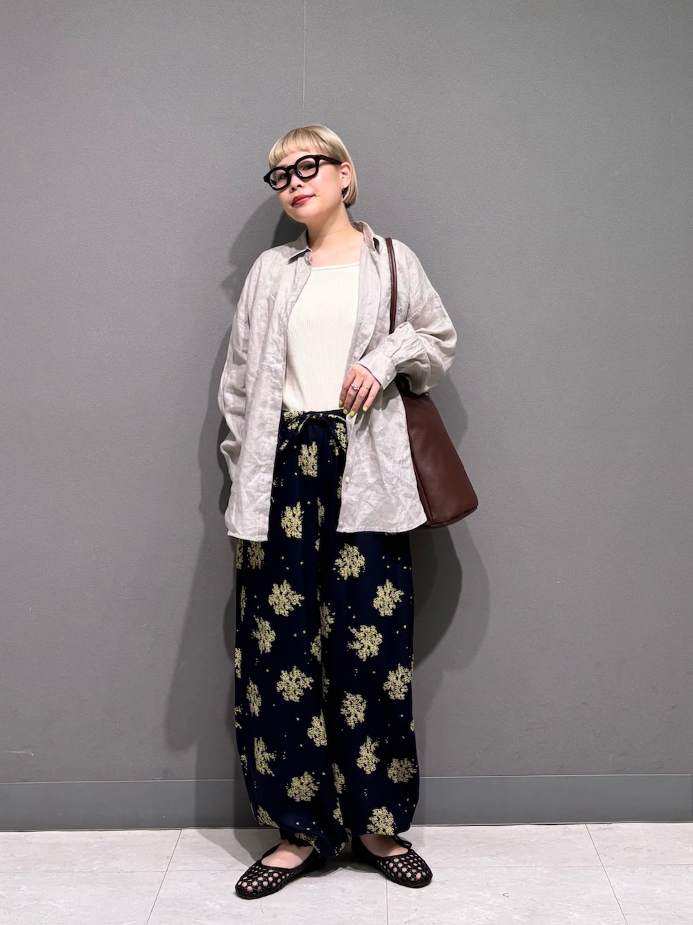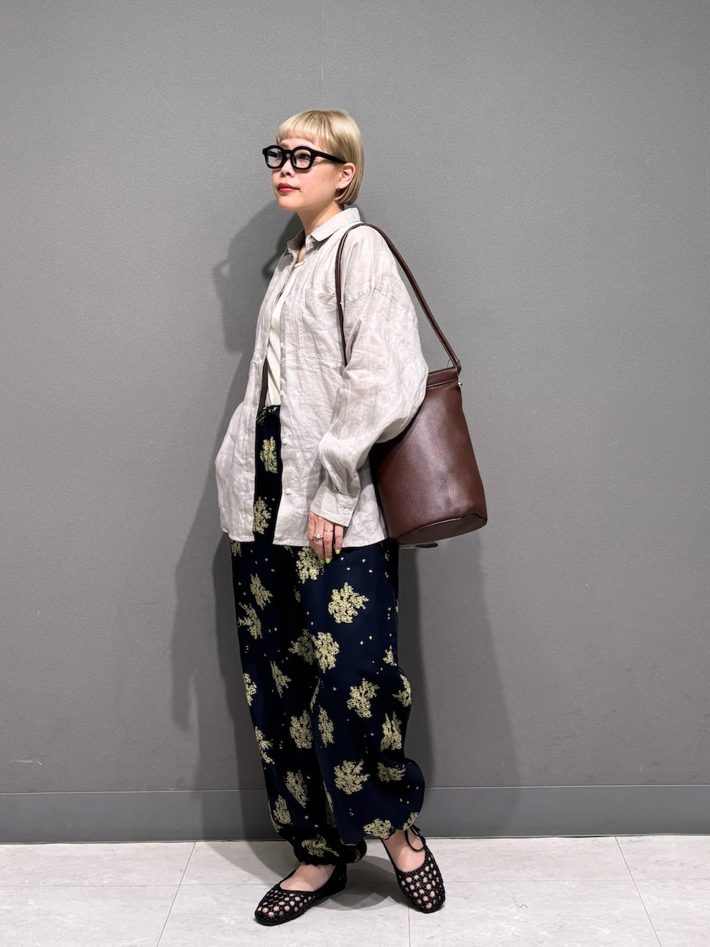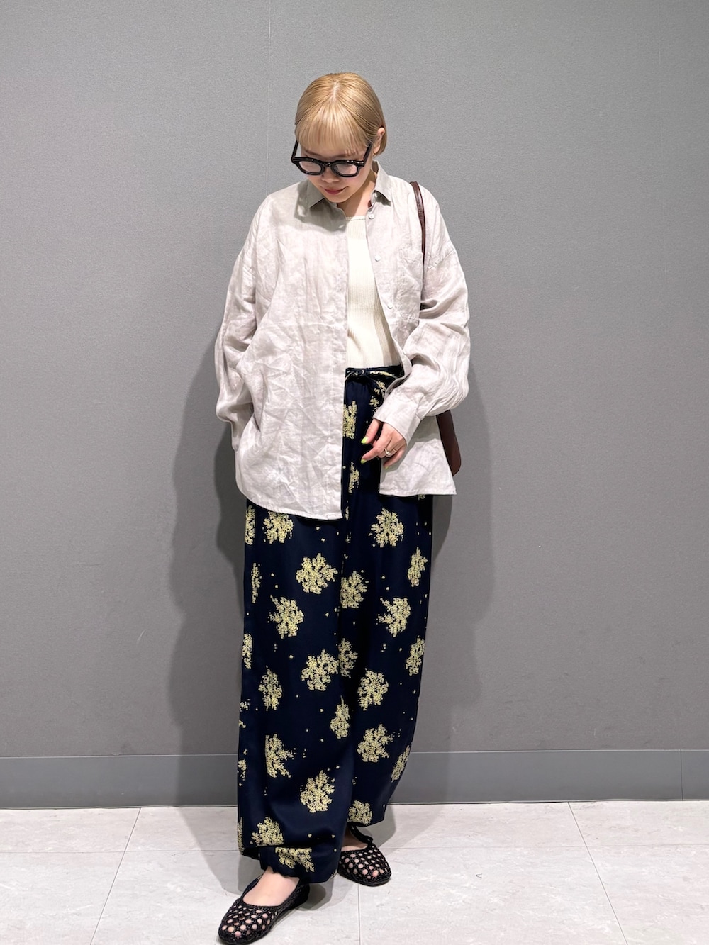 今回は花柄のボトムと合わせました。