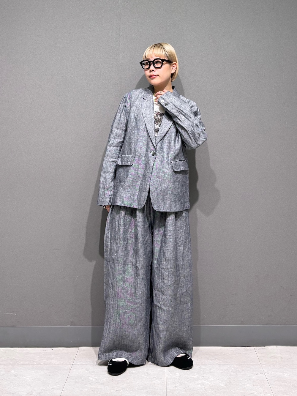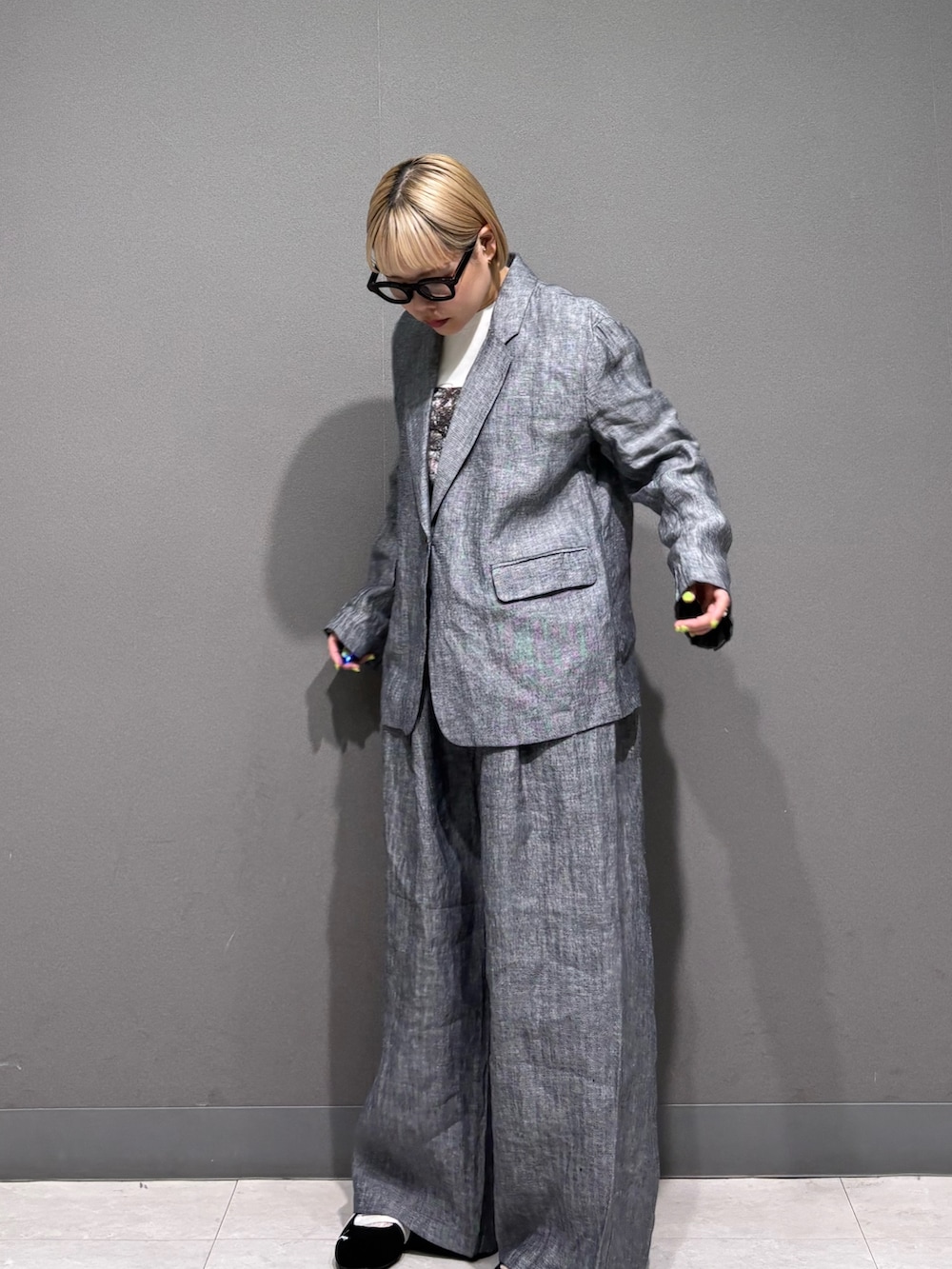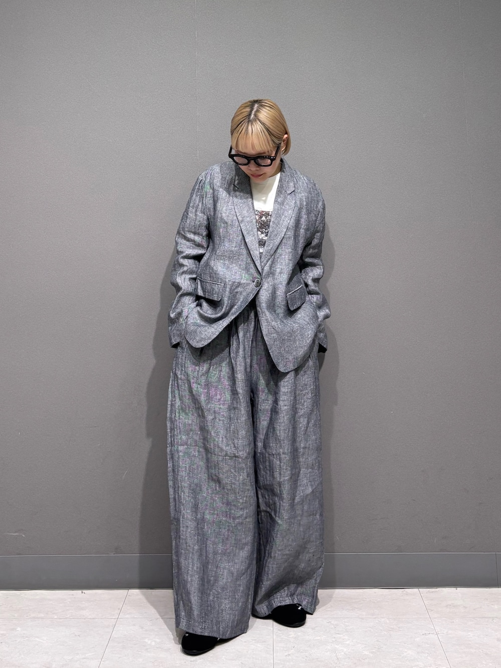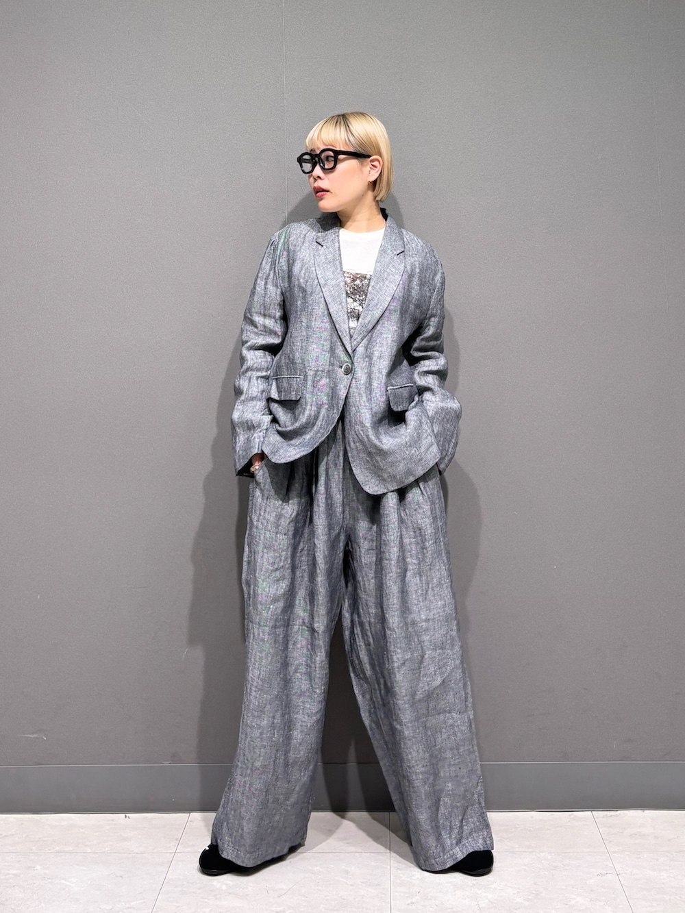 ゆるめなセットアップスタイル。