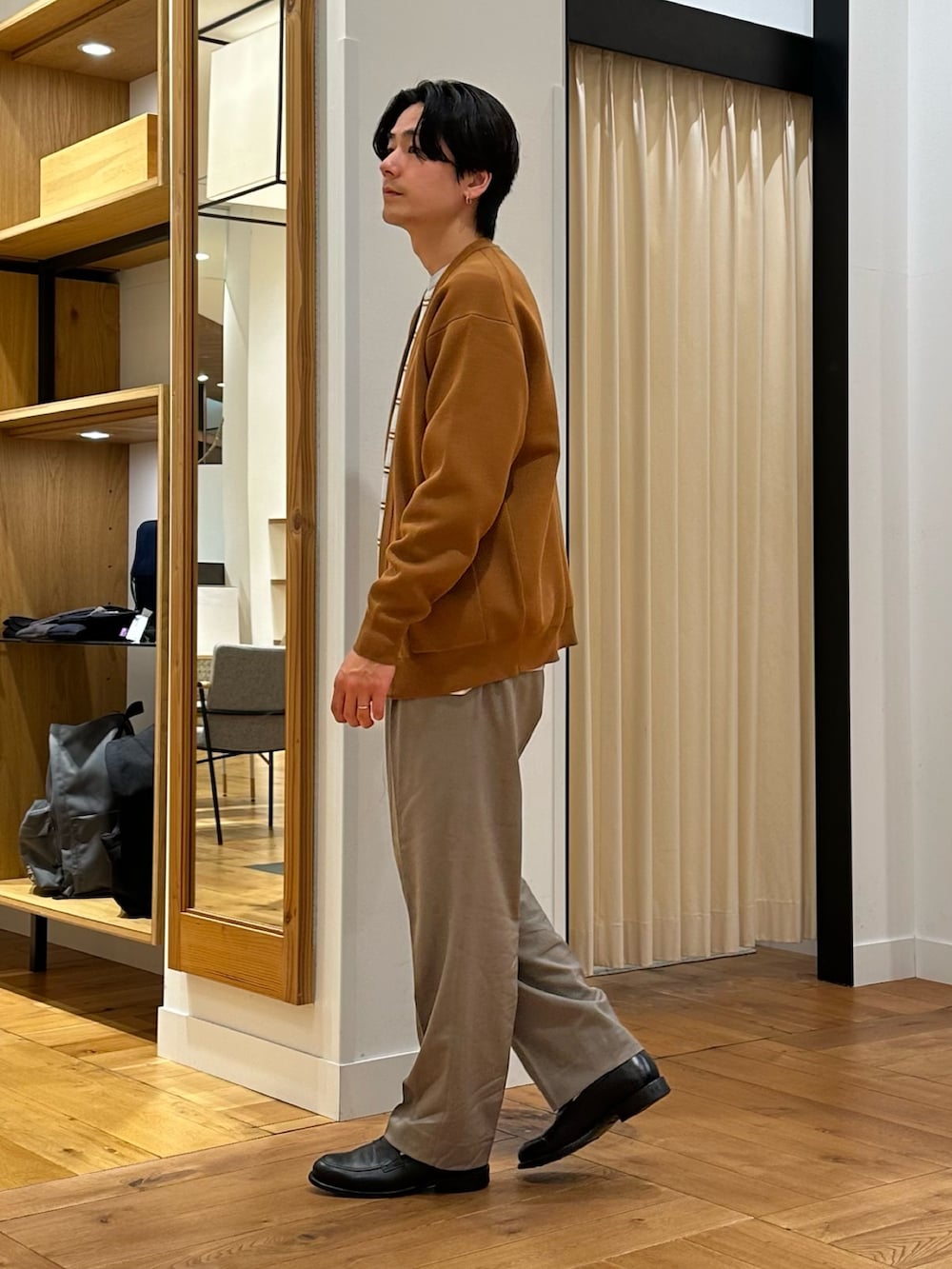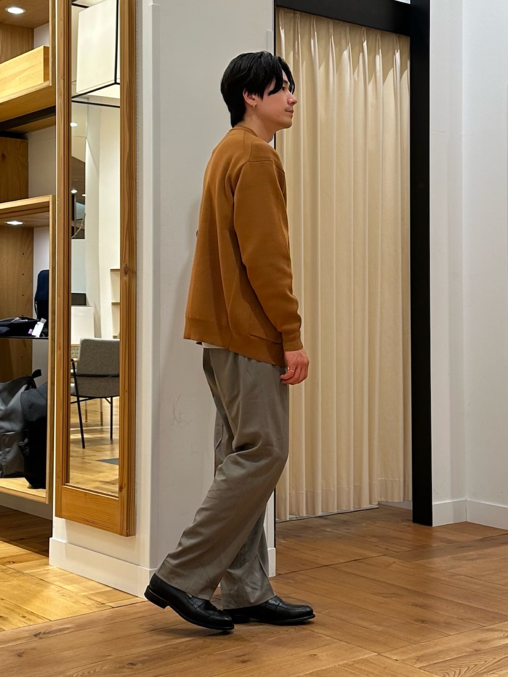 ニットとワイドトラウザーで