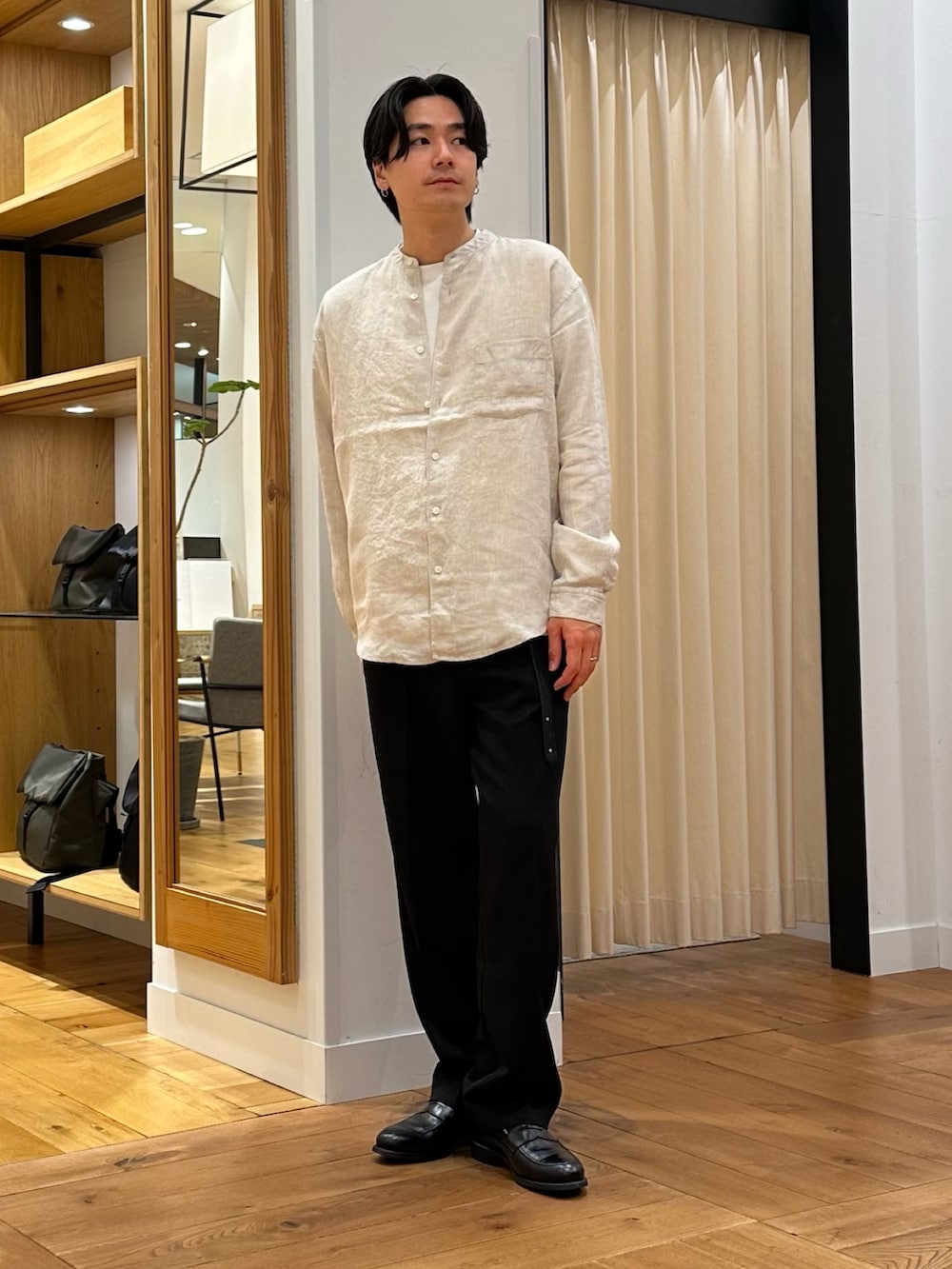 DOORSシルケットリネン バンドカラーロングスリーブシャツ- カラー:
