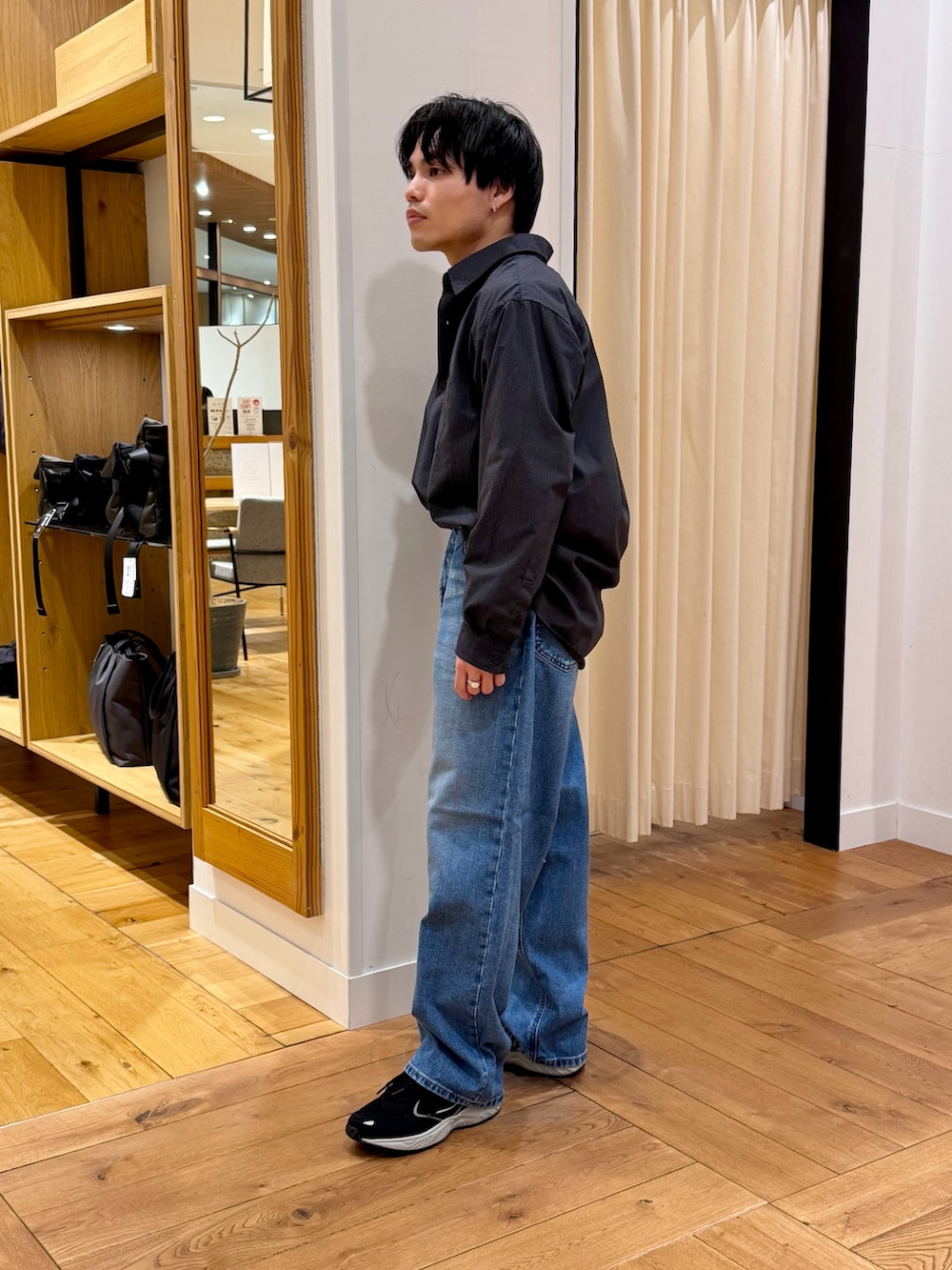 ゆとりのあるサイズ感でかっちりせず普段使い向けのシャツです。