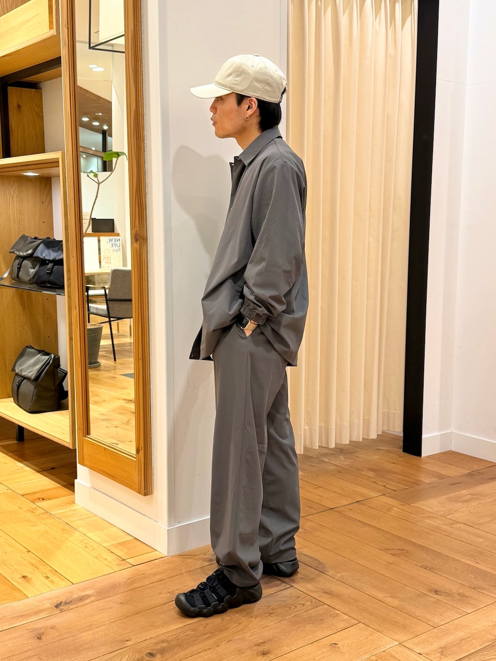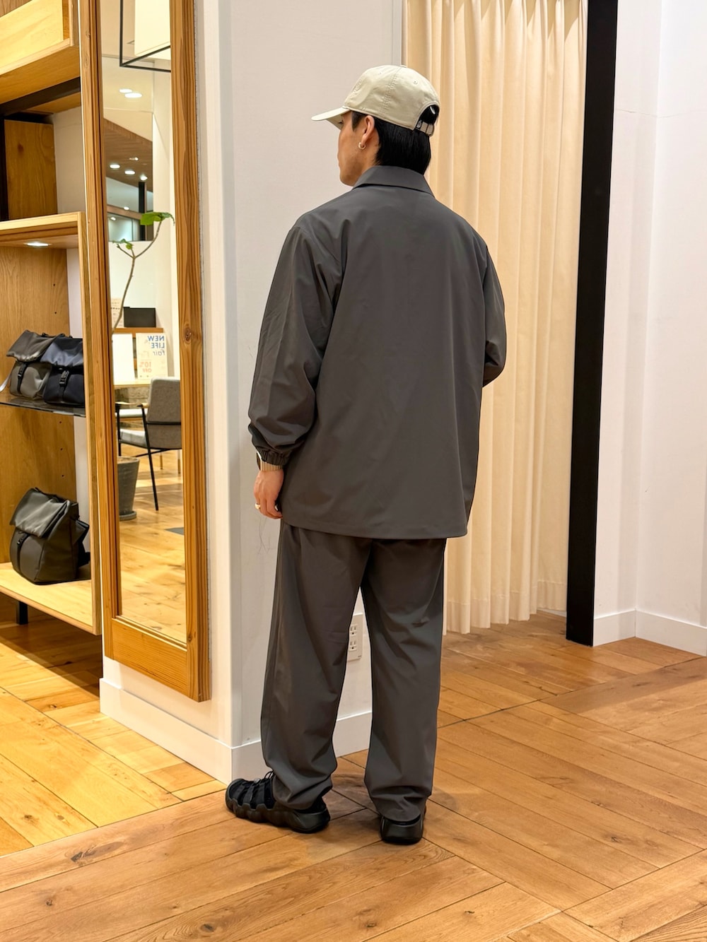 ストレートシルエットで程よいゆとりがあります。キレイめ見えするのでカジュアル過ぎない印象でラフに着れます。