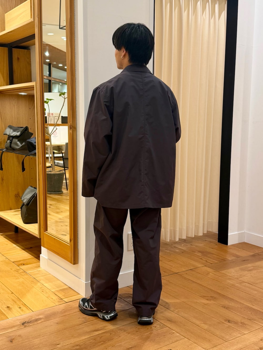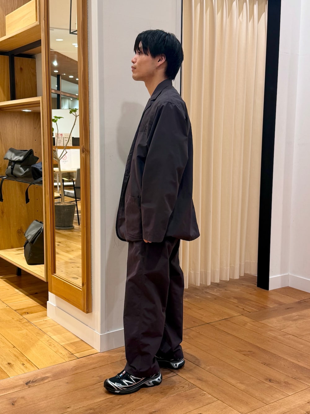 素材感は柔らかいですがしっかりしていて良い意味でしっかりシルエットか出てくれます。