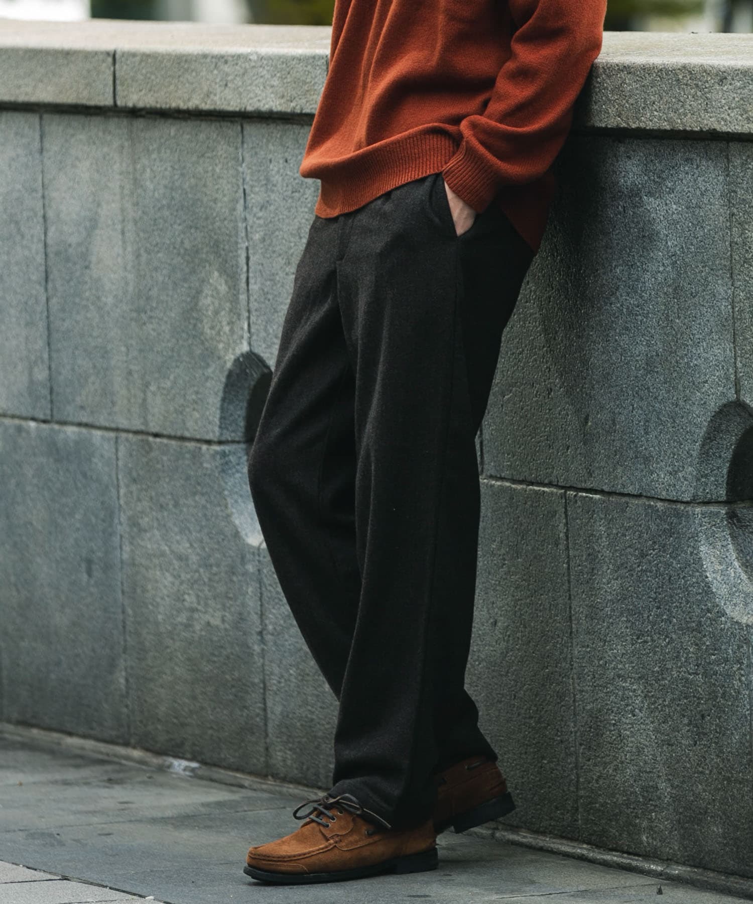 DOORSウールブレンドヘリンボーンタックパンツ- 着用カラー: