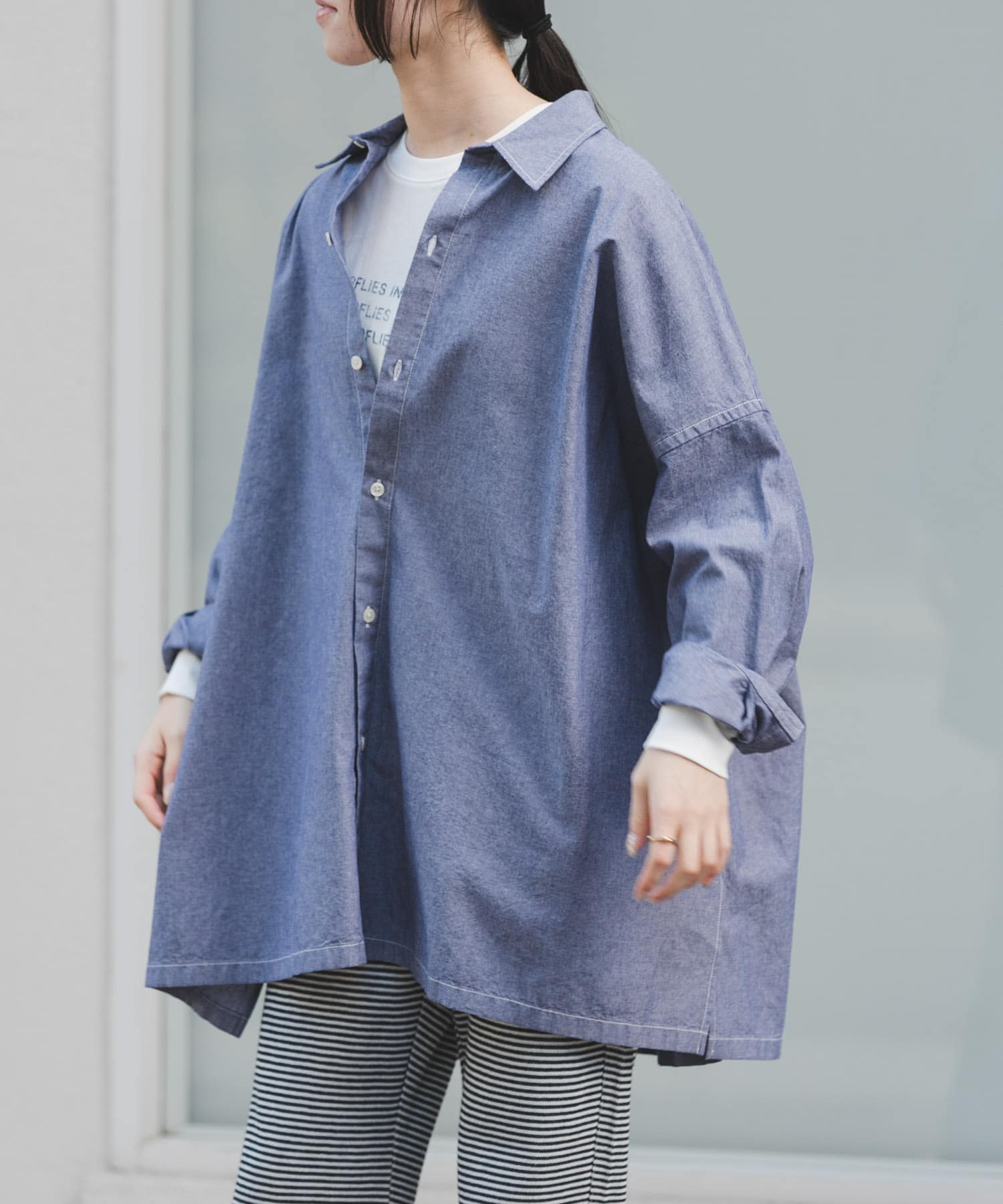シャンブレー生地で薄手で軽い着心地です!