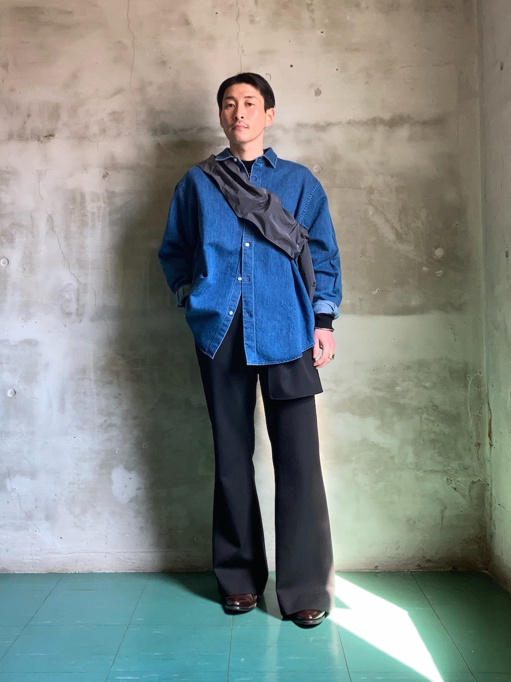 シャツならストレート勝負と言いたいところですが、事デニムシャツならば相当な変化球と言っても過言でない気がします。